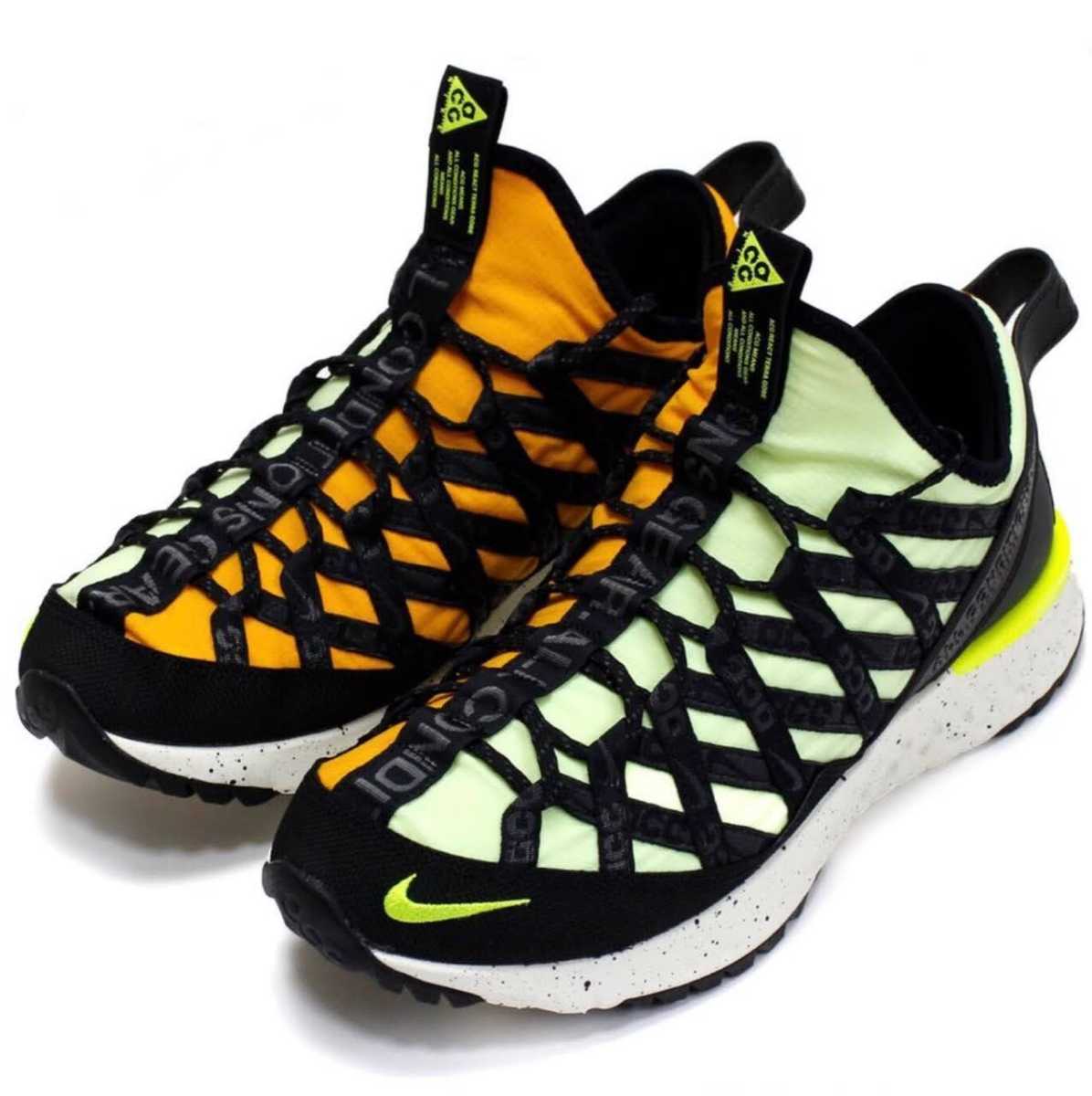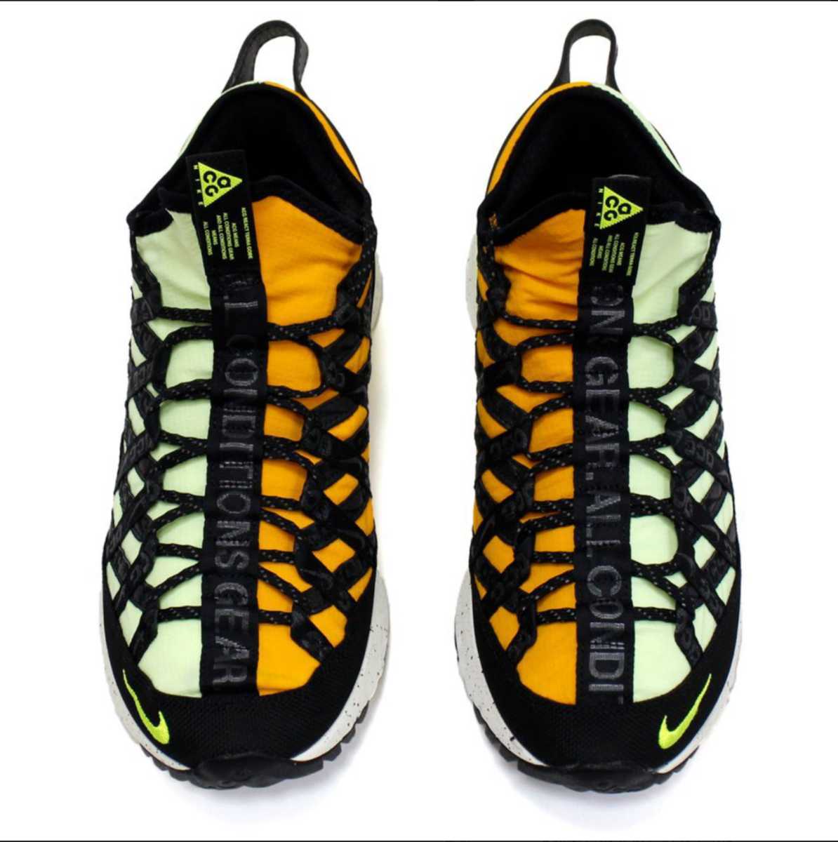 こちらは左右でカラーが異なり、オレンジとイエローのカラーリングを楽しめる一足です。