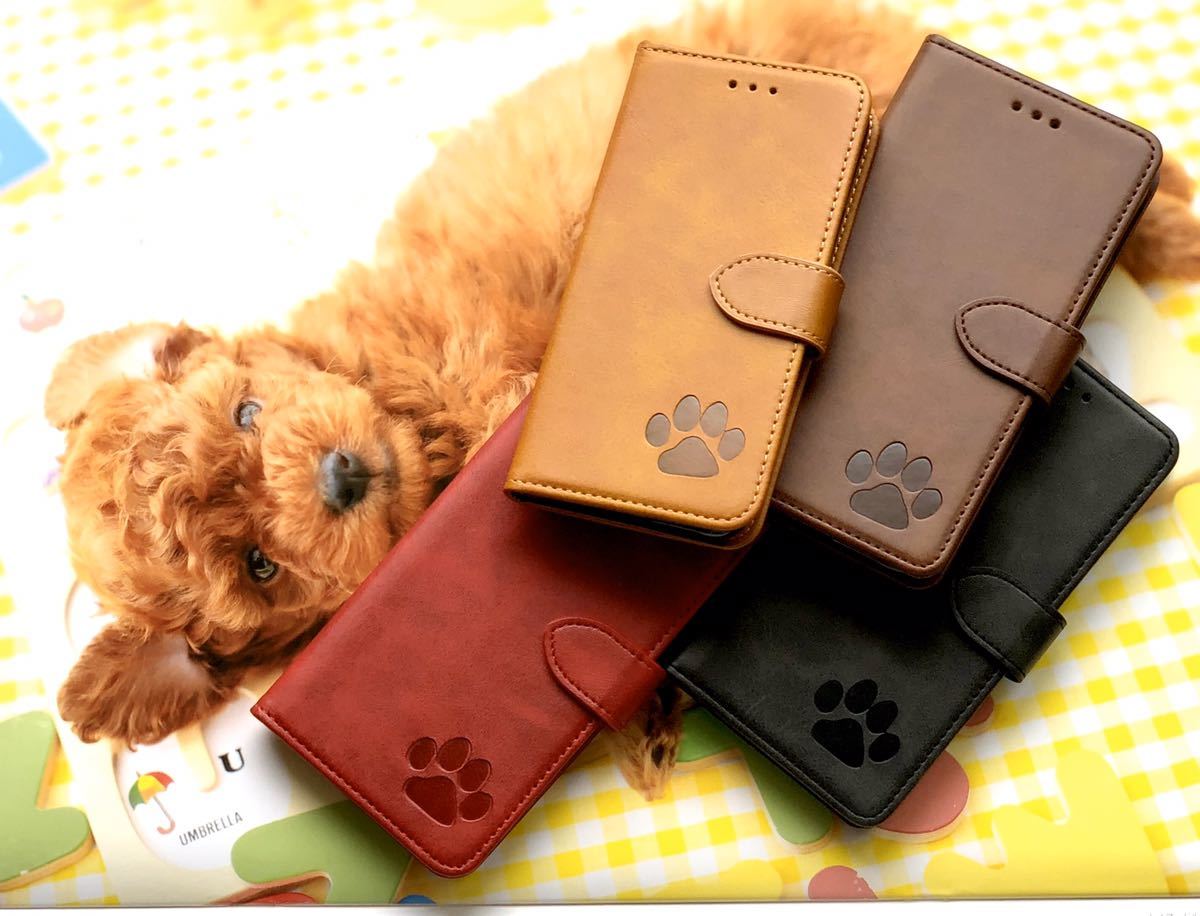 【商品名】スムース加工レザー肉球刻印手帳型ケース
