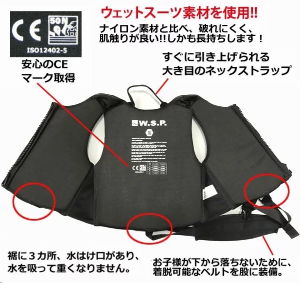 体にフィットしやすい浮力パッドをウェットスーツ素材で包んだ、高品質なキッズ&ジュニア用のライフジャケット!!