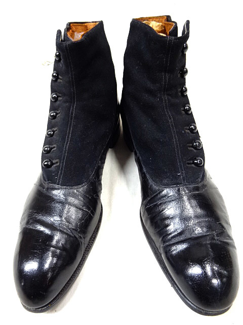 ビンテージ ウォークオーバー 希少 1900S 10S 20S ヴィクトリアン ボタン アップ ウール レザー ブーツ シューズ 黒 ブラック スーツ 靴
