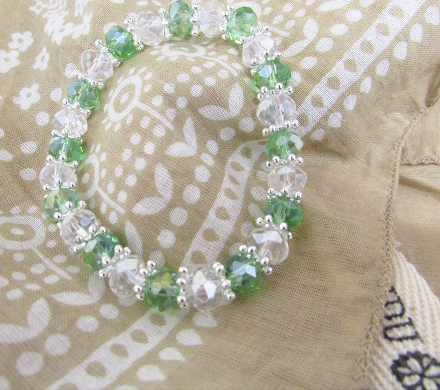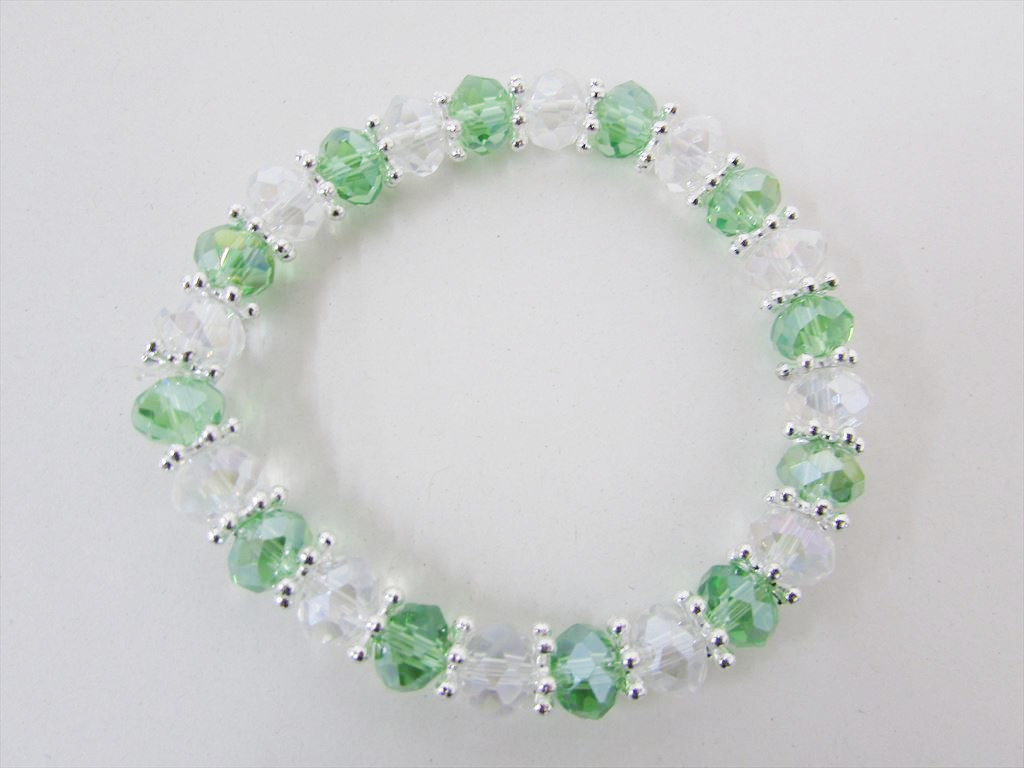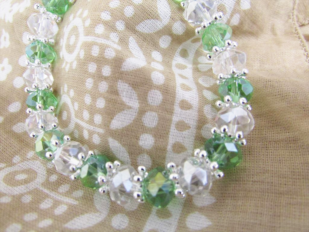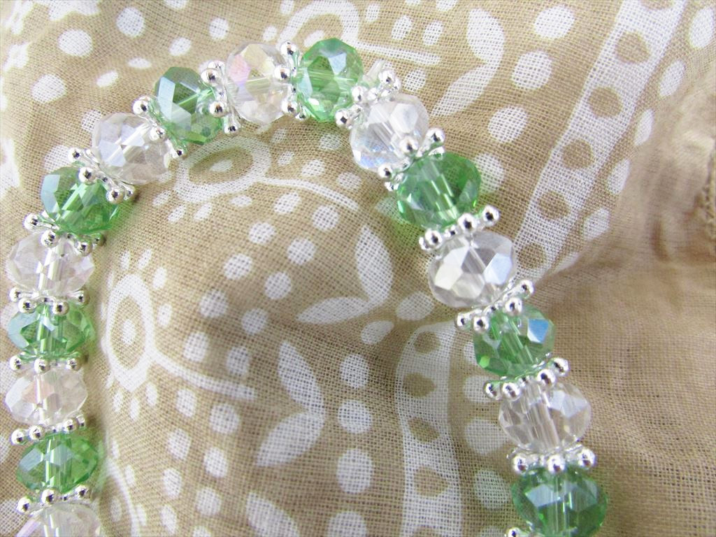 キラキラと輝きを放つロッククリスタル・クォーツブレスレット☆クリスタルは、非常に優れた浄化作用をもたらす石として知られています。完全に透明なクリスタルは、前に進むべき道をより明確にし、夢の実現を助けてくれるといわれています。グリーンクォーツはヒーリング効果があると言われ、疲れた人と関わることの多い職業の方にも人気です。こんな方に好まれて使われています。・人間関係の改善に・心身が疲れている・停滞期から抜け出したい内周:約16cm~17cm素材:ロッククリスタル ・グリーンクォーツ(合成水晶)約8mm※合成水晶は水晶を再結晶させて作られた石で、成分・結晶構造は天然水晶と同じです。※写真と実物とは色味が異なって見える場合があります。