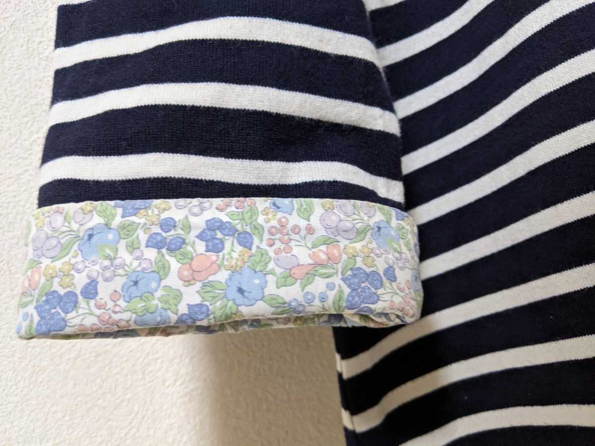 ・七分袖の折り返しはそのままでも着れますし、折り返すとリバティ柄がおしゃれです。