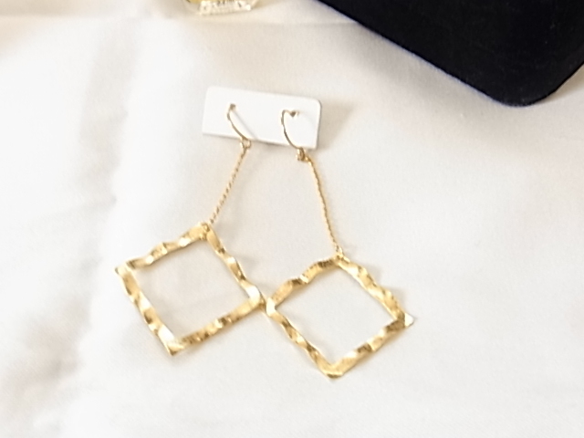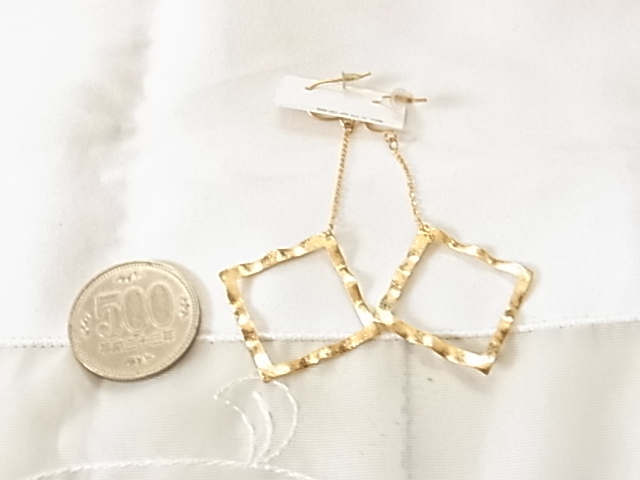 やや訳あり安価 ゴールドカラー 金色のモニュメントのようなデザイン キャッチはシリコン リモート映え アメリカンピアス☆