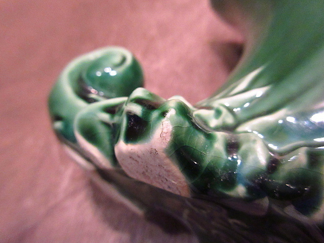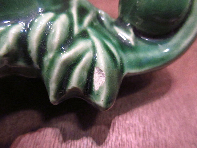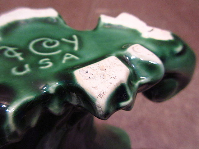 | 静岡県富士市にあるCOZY VINTAGEです。 海外から直接仕入れた古着、雑貨などを扱っています。 ホームページもございますので、そちらもチェックしてみてください。 https://www.used-cozy.com こちらの商品は佐川急便元払い80サイズです。 ◆サイズ◆ 高さ・・・約14.5cm 横幅・・・約18cm 奥行き・・・約9.5cm (計測箇所によって多少異なりますのでだいたいの目安としてお考えください。) ◆状態◆ 底に汚れがあります。 下部に約8mm程と約7mm程の欠けがあります。 ボディに多少の薄い汚れがあります。 ダメージ、汚れが気になる方、神経質の方はご遠慮下さい。 ◆商品詳細◆ 素材は、セラミックです。 色は、緑に近い色合いです。 底に「McCOY USA」の表記があります。 正確な年代が分かりませんが、1970年代以前の物かと思います。 スマイリーフェイスマグ等で有名なMcCOYの物で、独特な形状の素敵なプランターです。 インテリア、ディスプレイ等に是非。 210114n8-otclct ◆ビンテージ古着、レトロな雑貨などの卸もお気軽にご相談ください。 ◆info@used-cozy.comまでお気軽にメールくださいね!! |