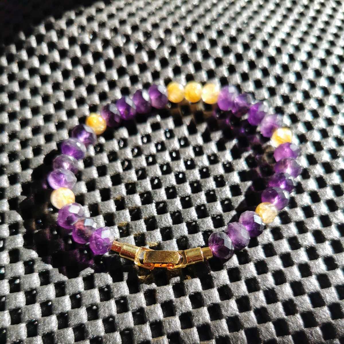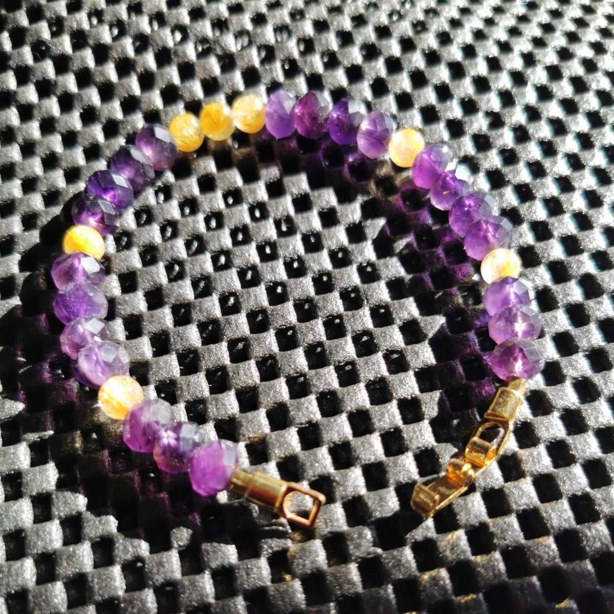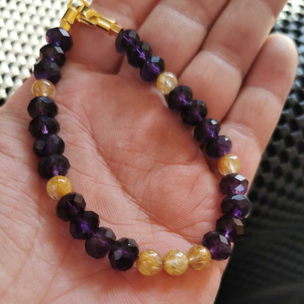 アメジストボタンカット8×6ミリルチルクォーツ6ミリ!留具は中折式留具!サイズ17センチ!綺麗なアメジストとルチルクォーツで作りました!送料無料宜しくお願いします!