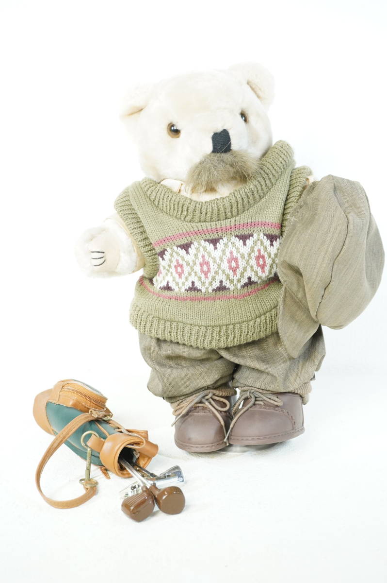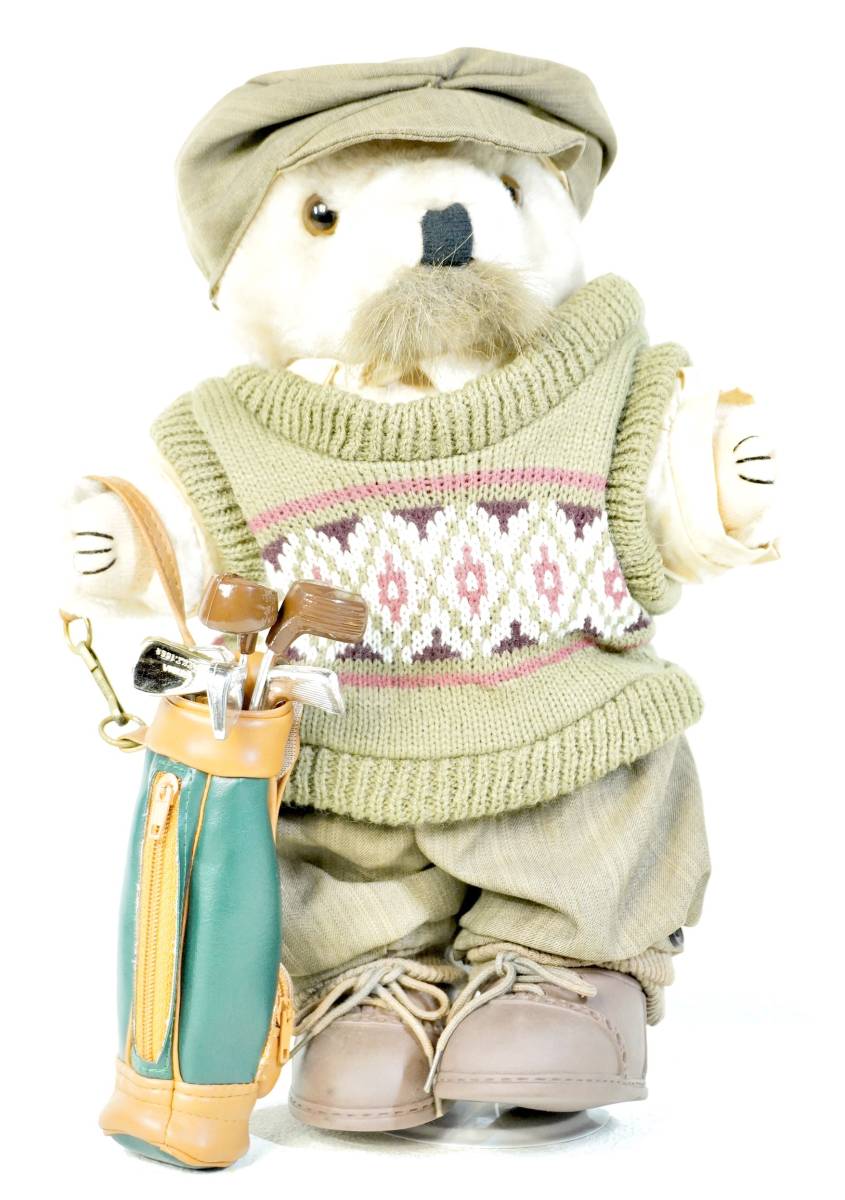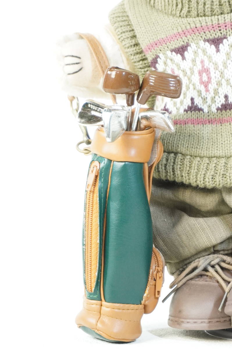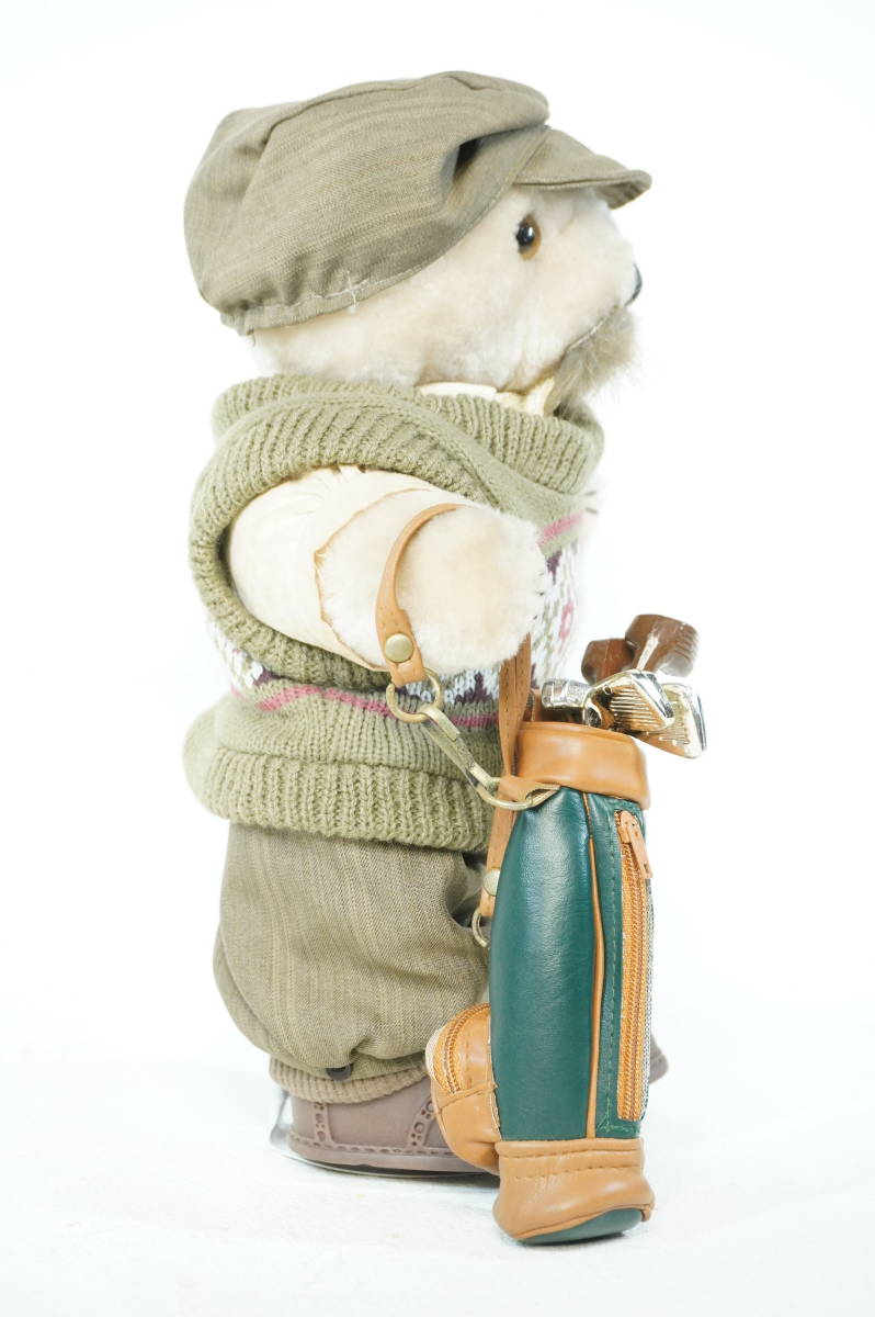 ミニゴルフバッグを抱えた可愛らしいゴルフベアー です!