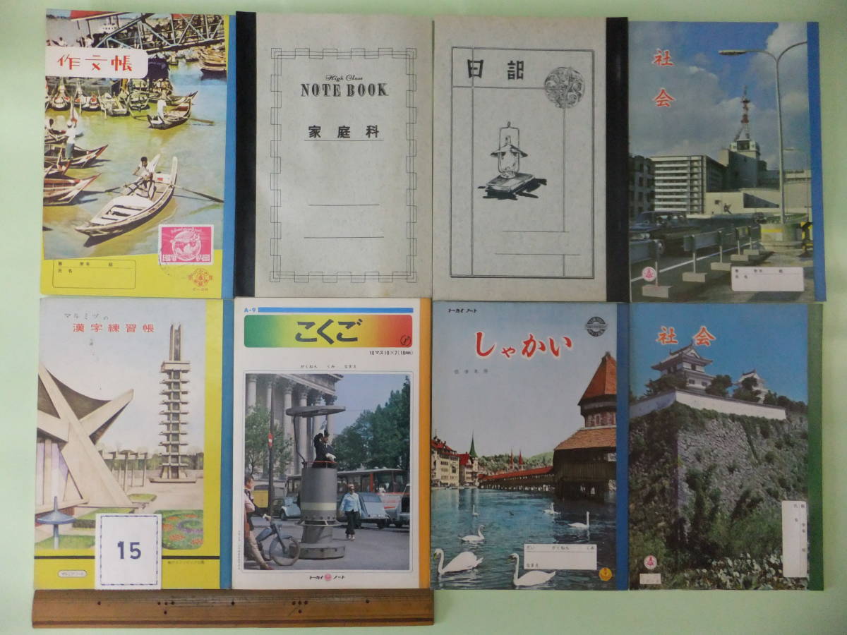 | ★三丁目の夕日★昭和レトロ 駄菓子屋文房具 未使用 小学校 ノート こくご しゃかい 社会 日記 家庭科 作文帳 8冊! |