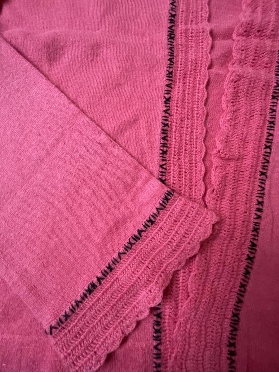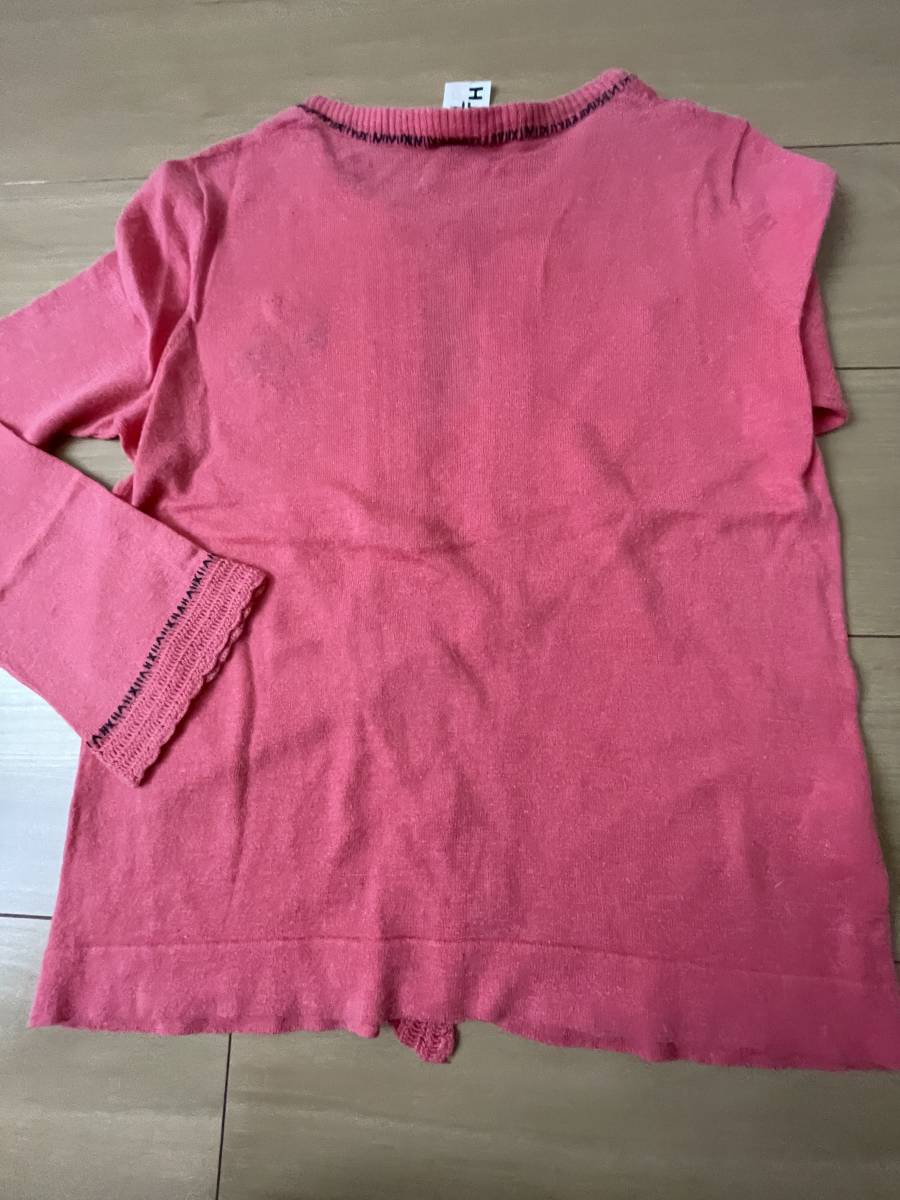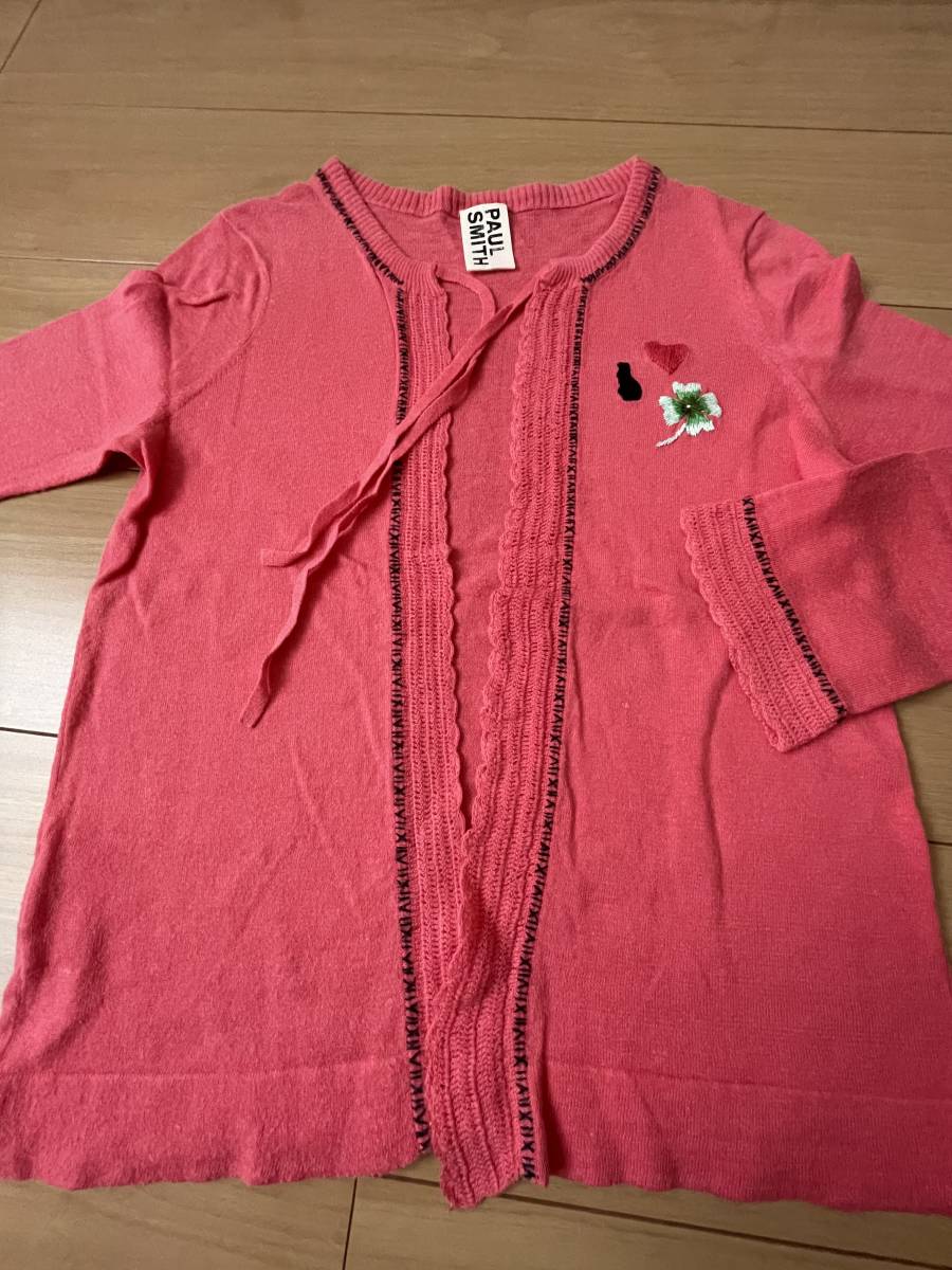 2.3回使用しました。カラーは綺麗なピンクです。胸にウサギ、クローバー、ハートの刺繍があります。袖口や首から前までブラックの刺繍があります。肩幅40cm胸回り90cm着丈52cm袖丈61cmです。素材は麻50%コットン50%です。購入価格は4万円弱程でした。