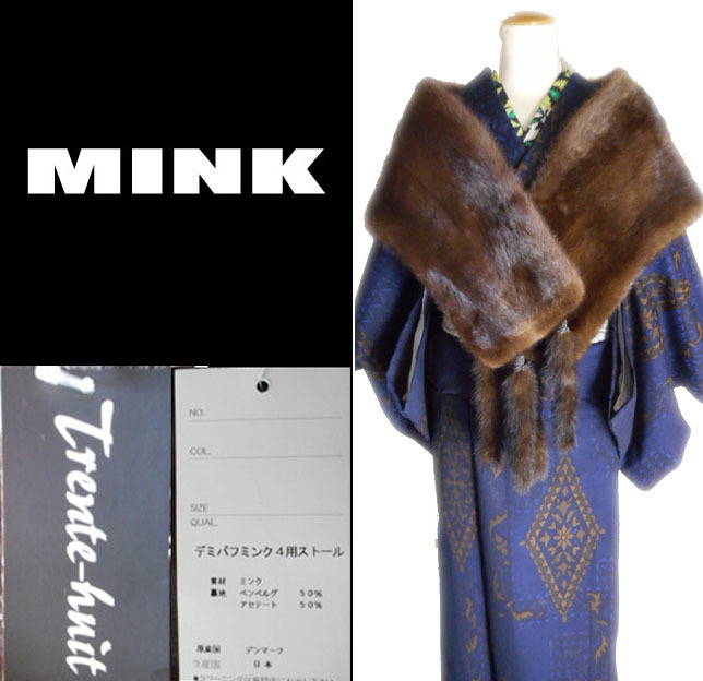 【高級毛皮】和洋兼デミパフミンク毛皮ショール