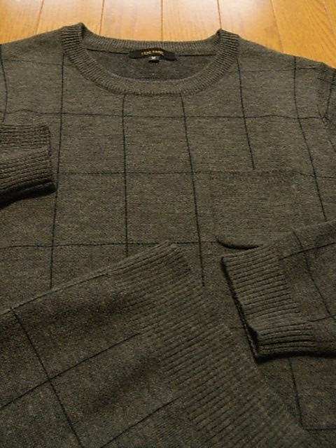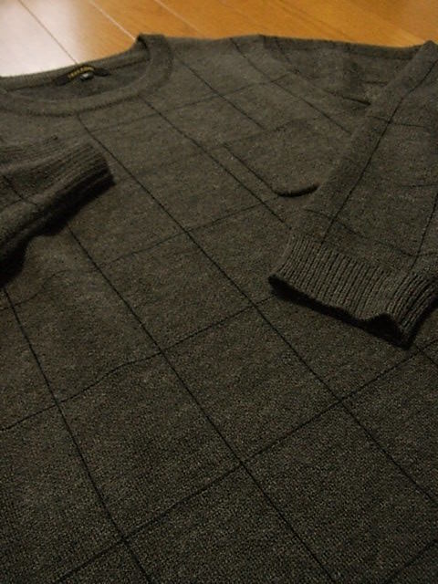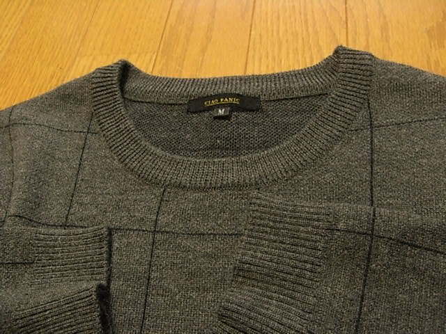 チャオパニック ウール かっこいい長袖ニット グレー系 チェック サイズM