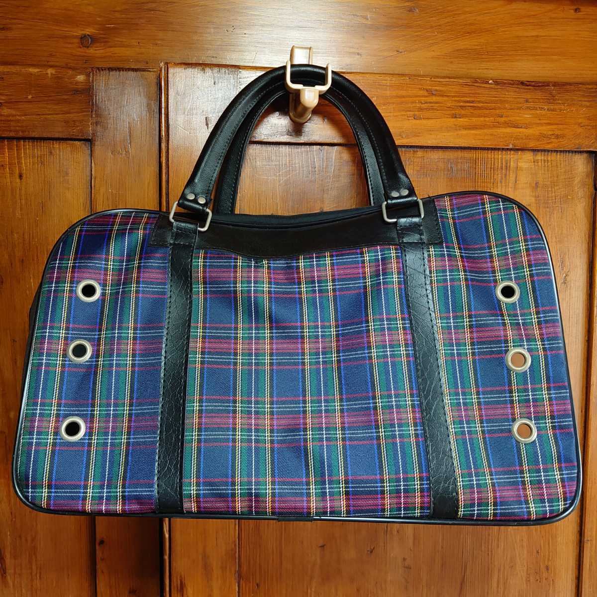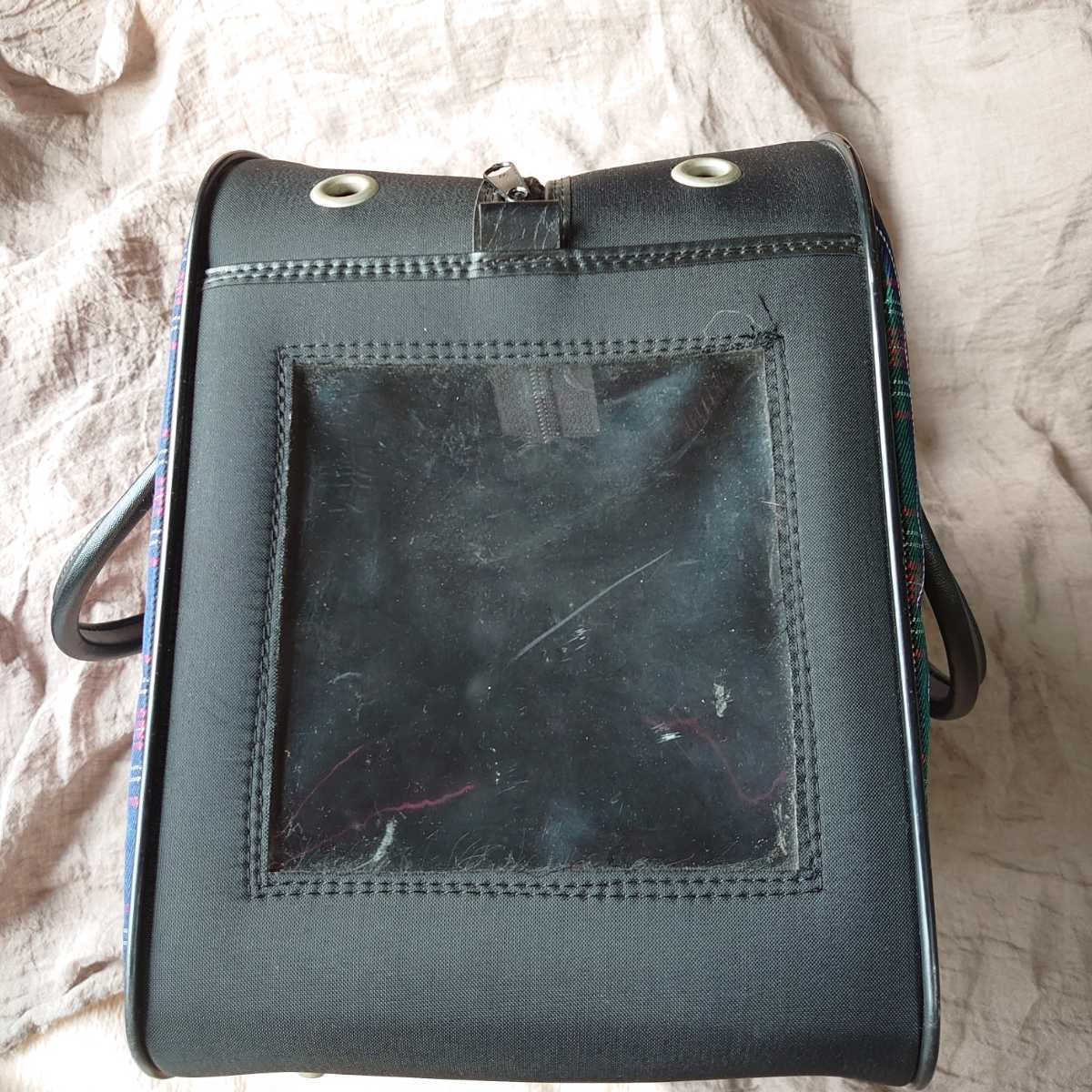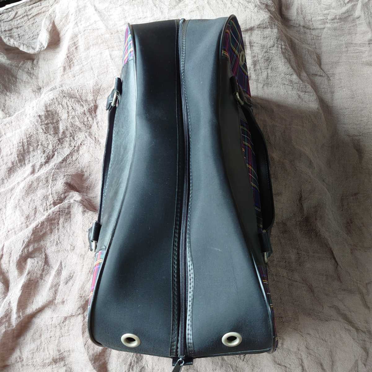 古着屋さんで購入しました。元々は犬を入れるためのかばんですが、トラベルバッグとして使っていました。