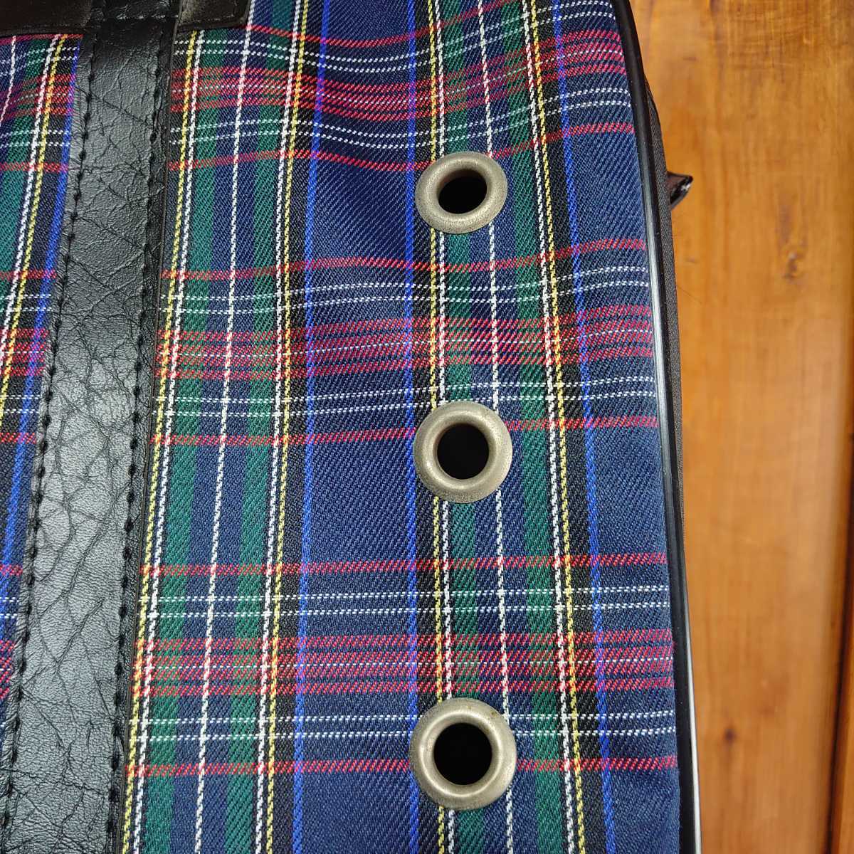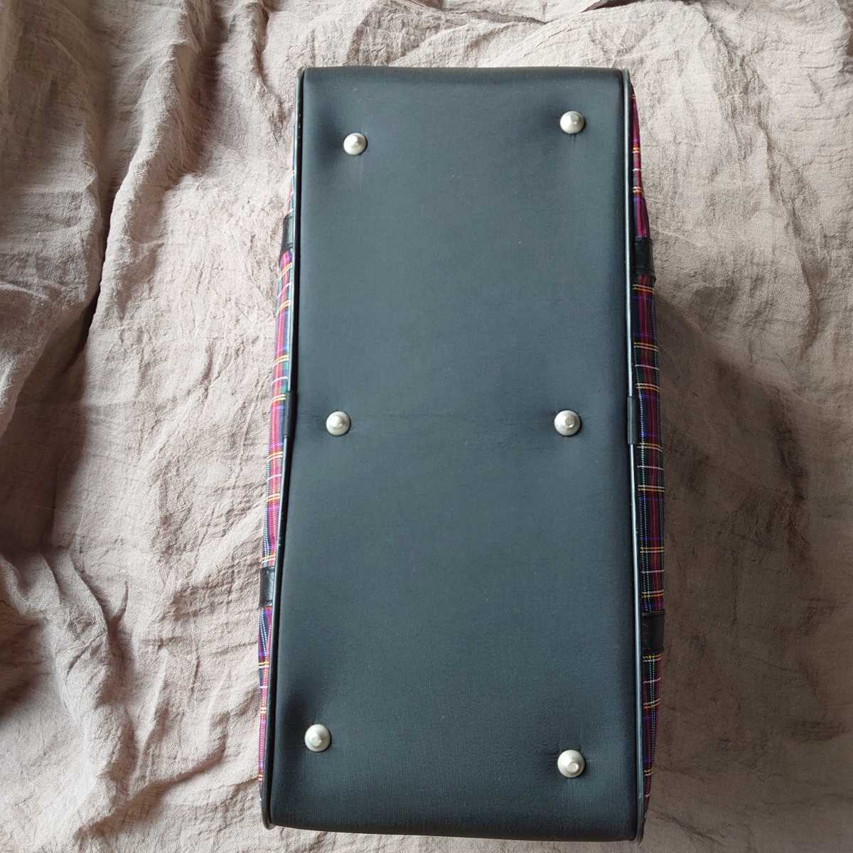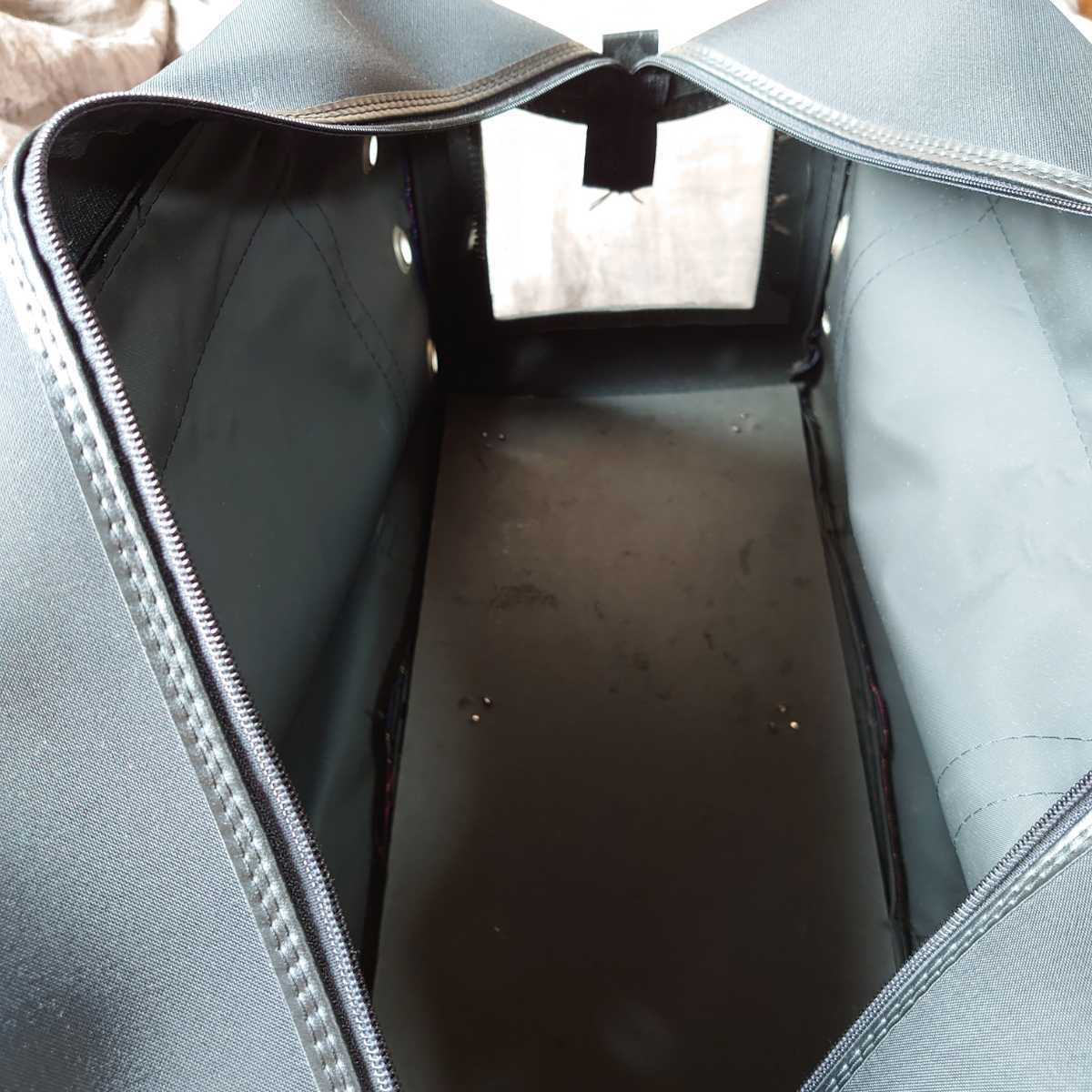 古着屋さんで購入しました。元々は犬を入れるためのかばんですが、トラベルバッグとして使っていました。