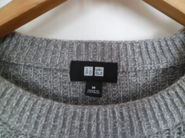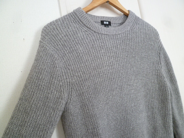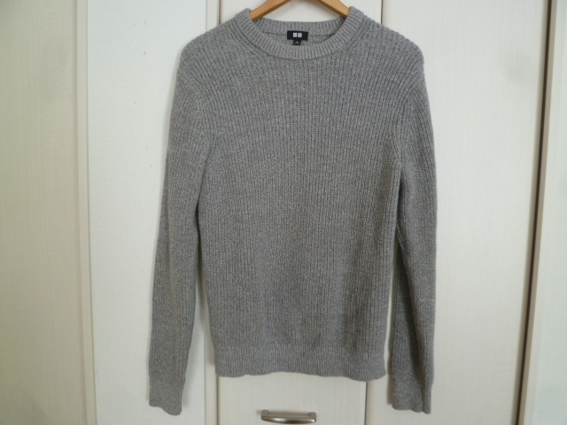 UNIQLO/ユニクロ△グレーざっくり編みシンプルニットセーターM/長袖トップス△120