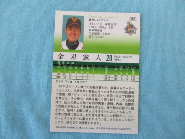 ★BBM 2008★1st Version〔009 金刃憲人 読売ジャイアンツ〕トレカ♪