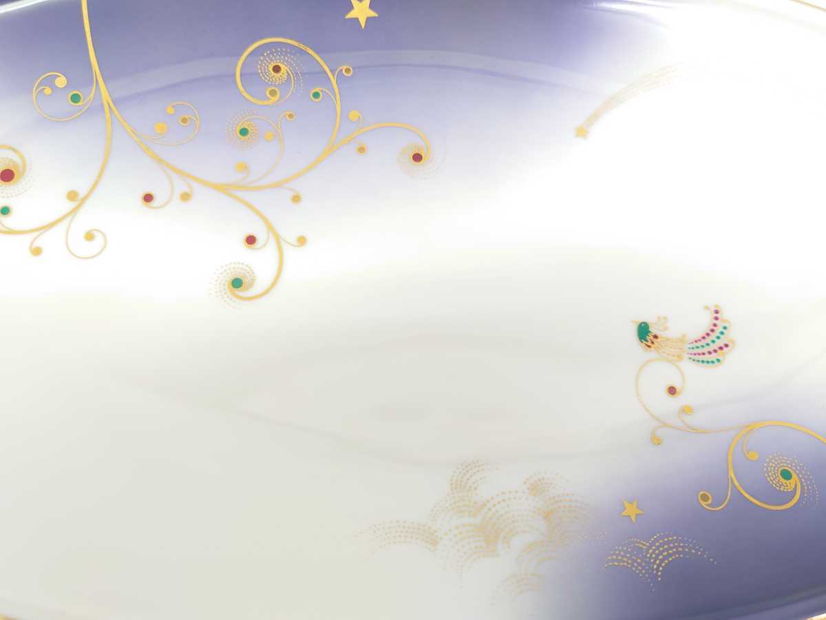 星のなる木という童話を創作し、大人の心を潤すロマンを表現。手仕事による吹きぼかしの微妙な色合い、豪華な金彩の絶品。
