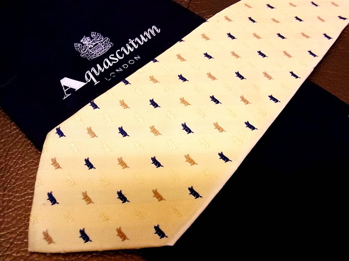 bvr3389♪良品♪アクアスキュータム【刺繍 豚 ブタ】ネクタイ