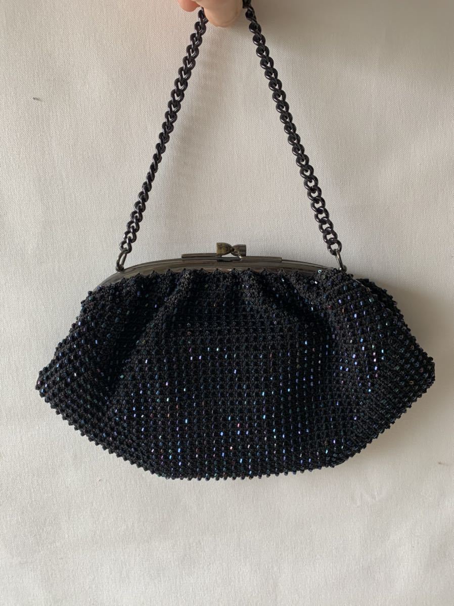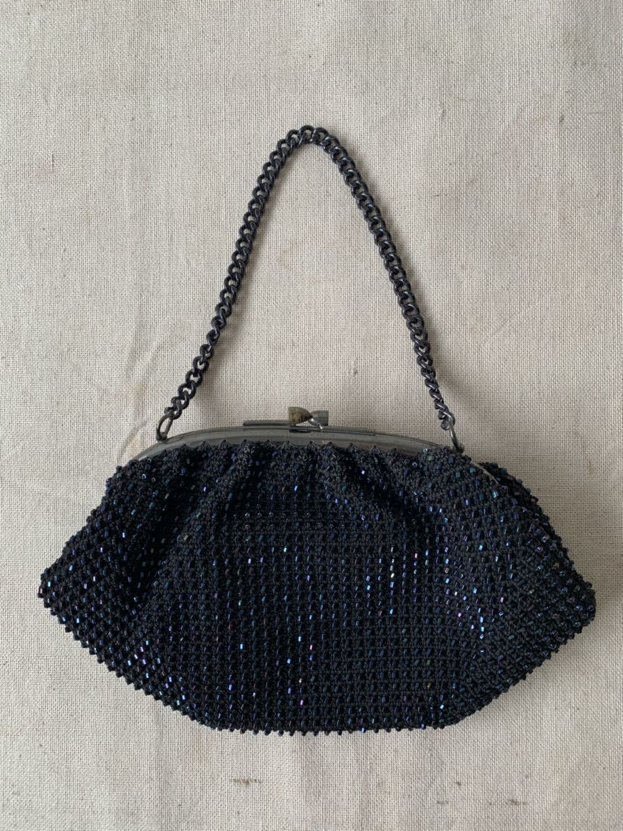 デザインが素敵なビーズバッグです。昭和レトロな雰囲気で、ファッションアイテムの一品にいかがでしょう。