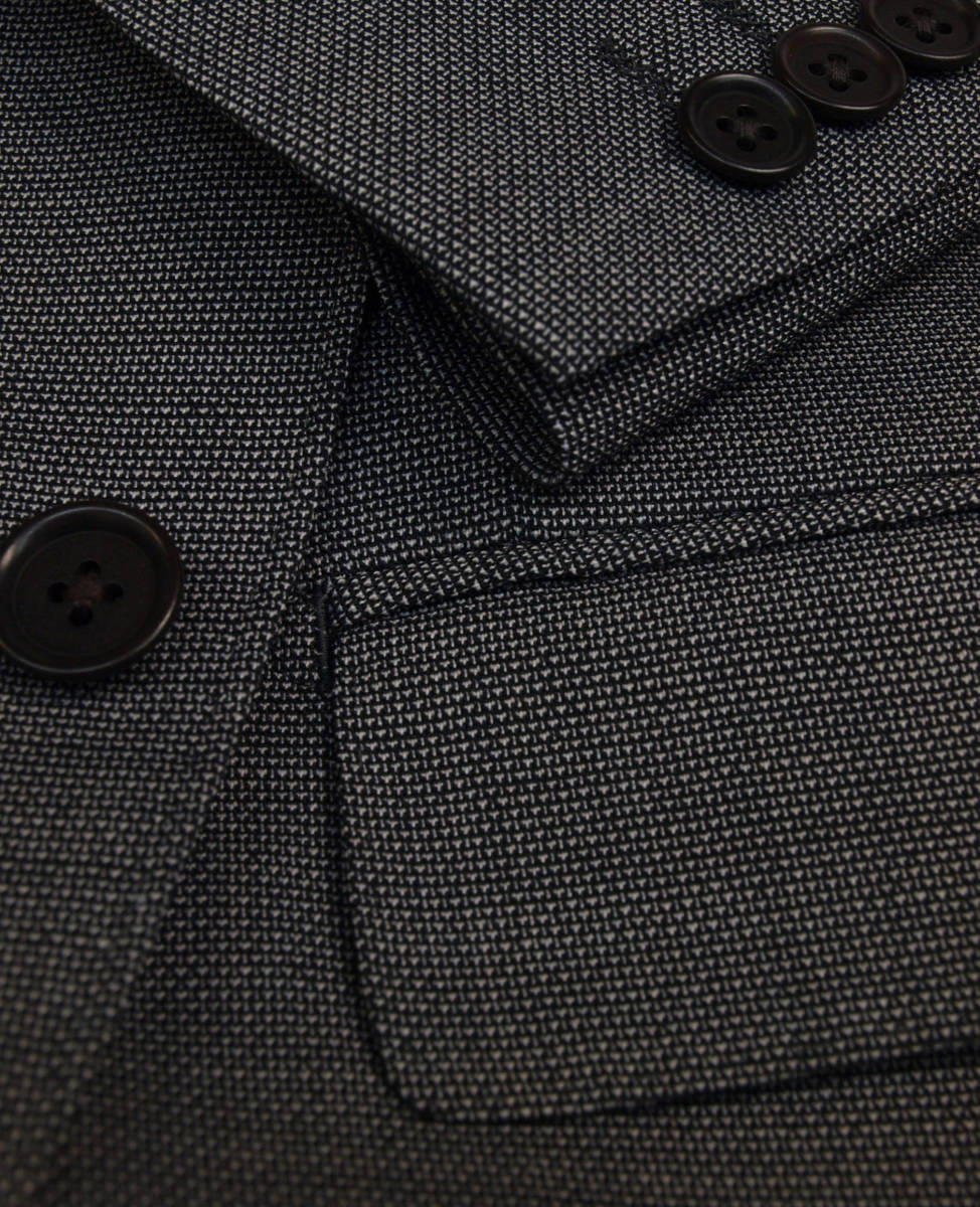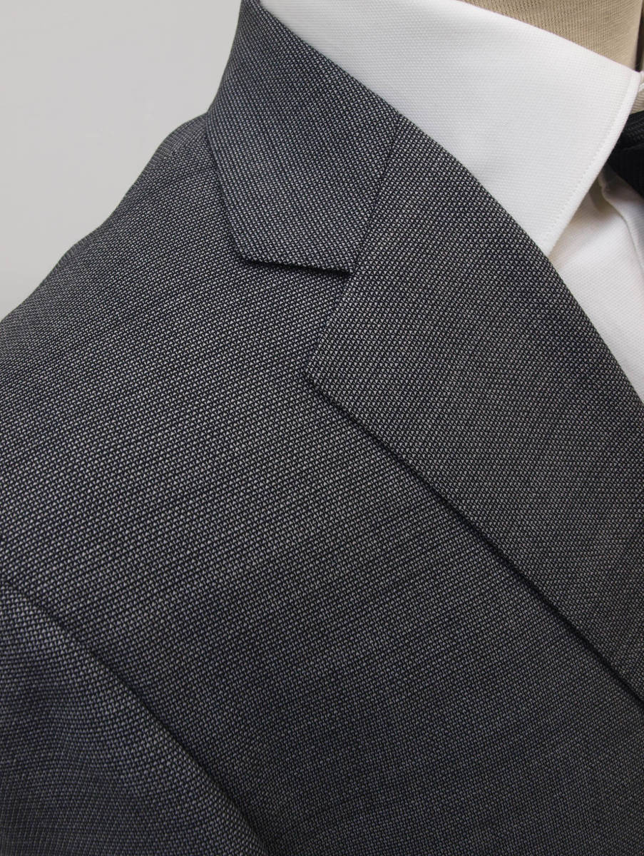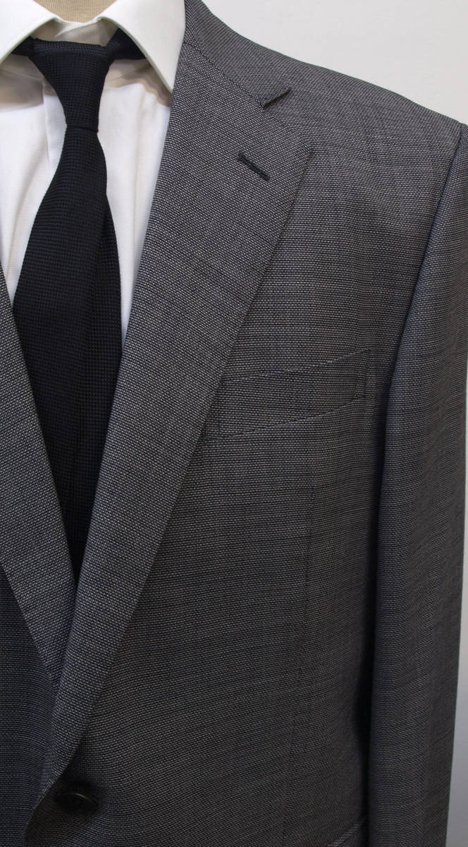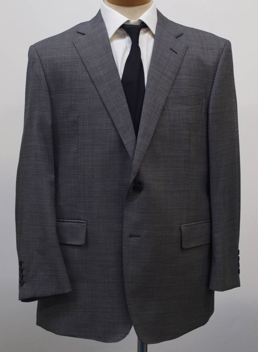 【サイズ】 E8(EXL号サイズ相当) 目安の体型 身長180cm~190cm、ウエストサイズ106cm前後 【ジャケット実寸】 肩幅52.5cm 着丈79.5cm 袖丈63.5cm 脇下部分60cm 身幅58.5cm 【パンツ実寸】 ウエスト(胴回り実寸)106cm わたり幅37cm(股下10cmの部位で34cm) 裾幅23cm 脇股上30.5cm 前股上32cm 股下97cm(裾上げしていない状態/新品) 【素材】 表地:ウール30% ポリエステル70% 裏地:胴裏/ポリエステル100% 袖裏/キュプラ100% 盛夏スーツ生地と比べるとやや厚みがあり、冬向けより薄手の紳士スーツ用ウールブレンド素材を使用 【色】 ミックスグレー 【柄】 黒色と白にちかい薄グレー使いのピンヘッド織柄 秋冬メインのシーズン対応商品ですが、秋冬物としては薄手の素材で背抜き仕様となっておりご着用の地域にもよりますが真夏、真冬を除くほぼオールシーズン対応のテンマンススーツです。 【デザイン】 ほどよいゆとりのある楽な着心地のシングル2つボタンスーツ、レギュラーフィット、ビジネススーツ新品、裾上げしていない状態です。 ・ジャケットはシングル2つボタンですっきりとしたシルエットですがややゆとりがある着用感のベーシックレギュラーモデル ・パンツは股上は浅くなく普通で、適度なゆとりをもたせたレギュラーフィット、1タックパンツ 【縫製仕様】 ・ジャケットはシングル2つボタン、ノッチドラペル、襟縁等AMFステッチ入り、袖口ボタン4つ、センターベント、内ポケット4つ(小ポケット2つ含む)、背抜き仕様 ・パンツはワンタック、膝裏当て付き、脇ポケット斜め付け、後ろポケット両玉縁で左のみボタン付き、フロントはファスナーでボタン&ホック仕様/うちかけボタンあり きれいな縫製仕立てできちんとしたビジネススーツの仕様で仕上がっております。