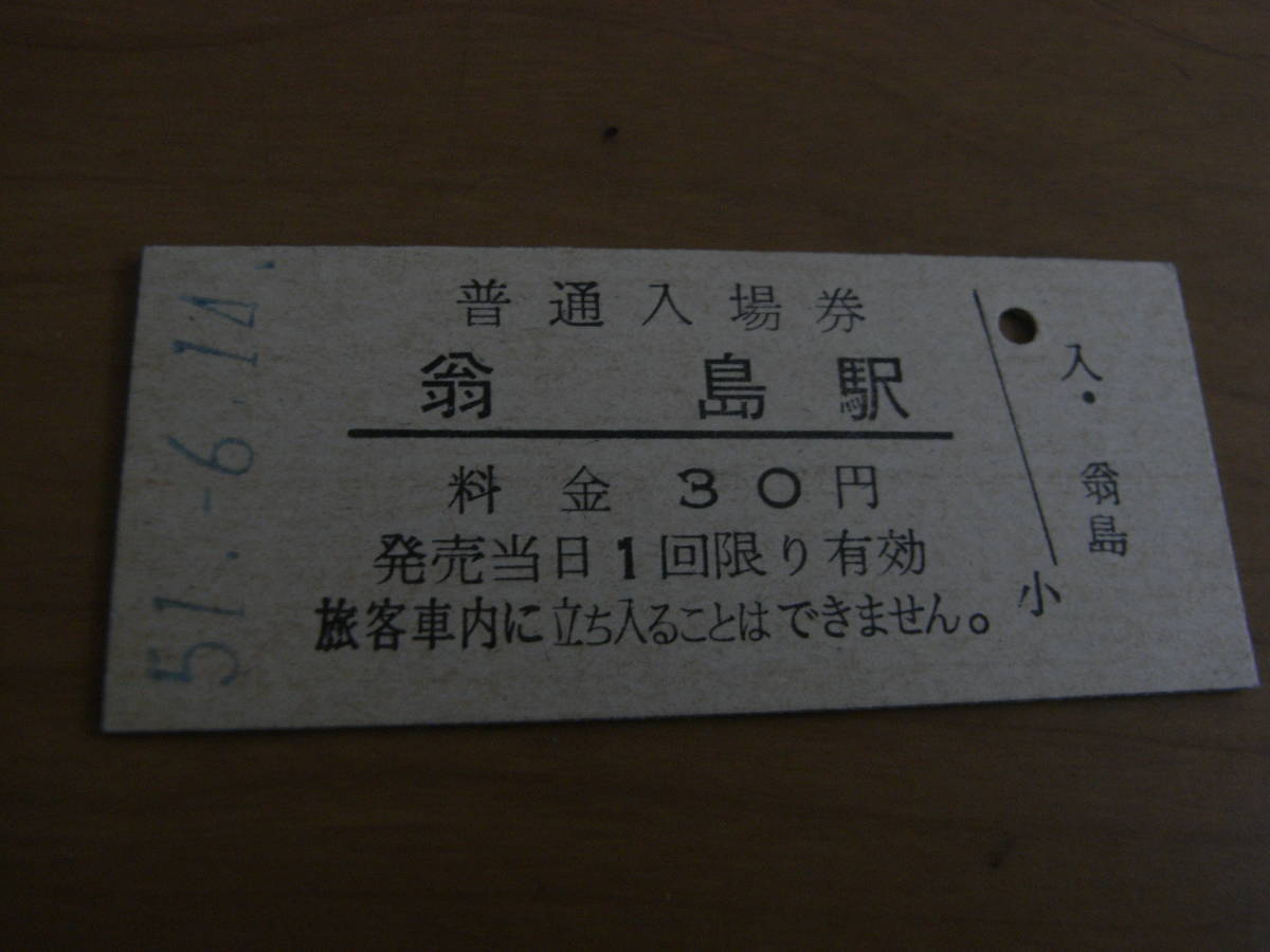 磐越西線 翁島駅 普通入場券 30円 昭和51年6月14日