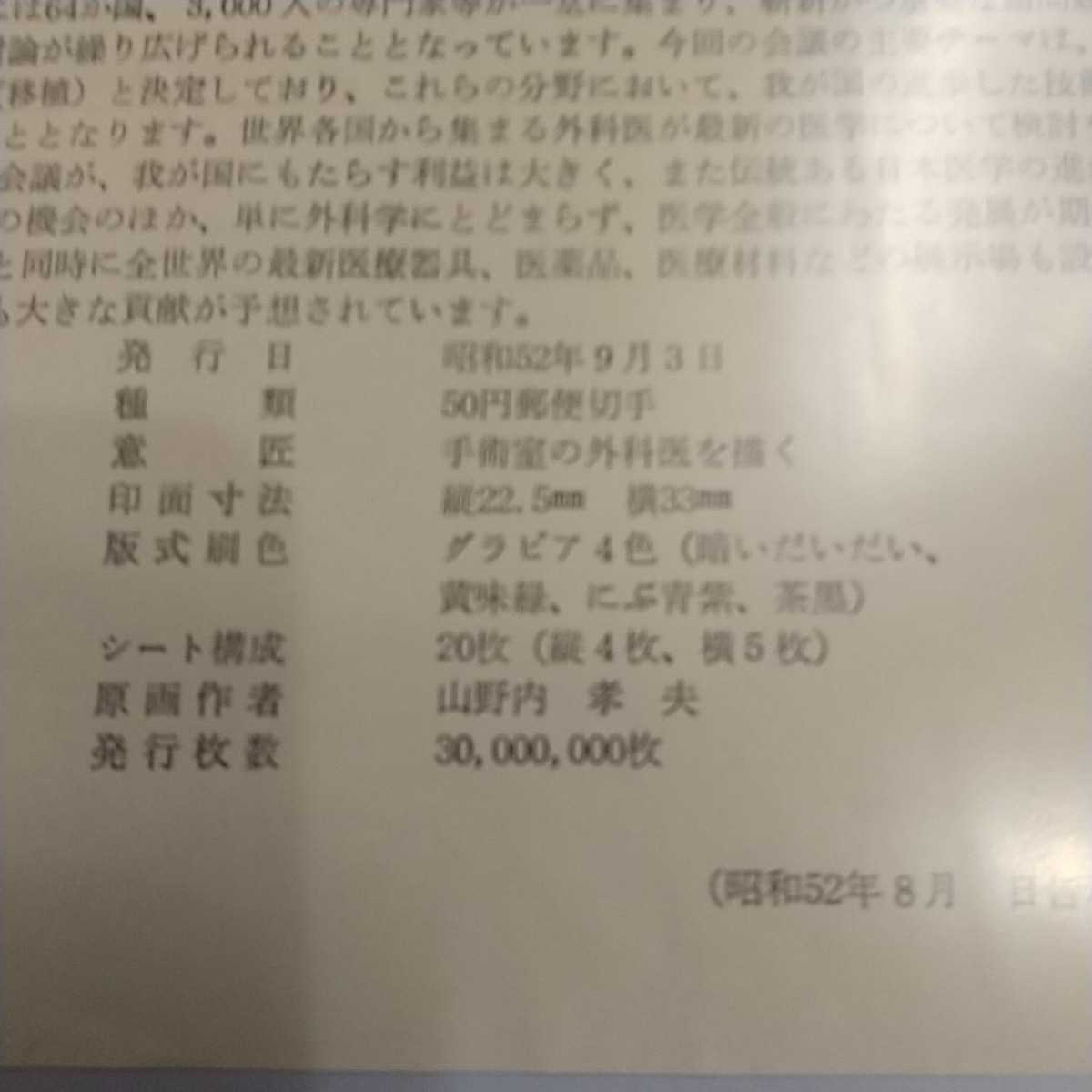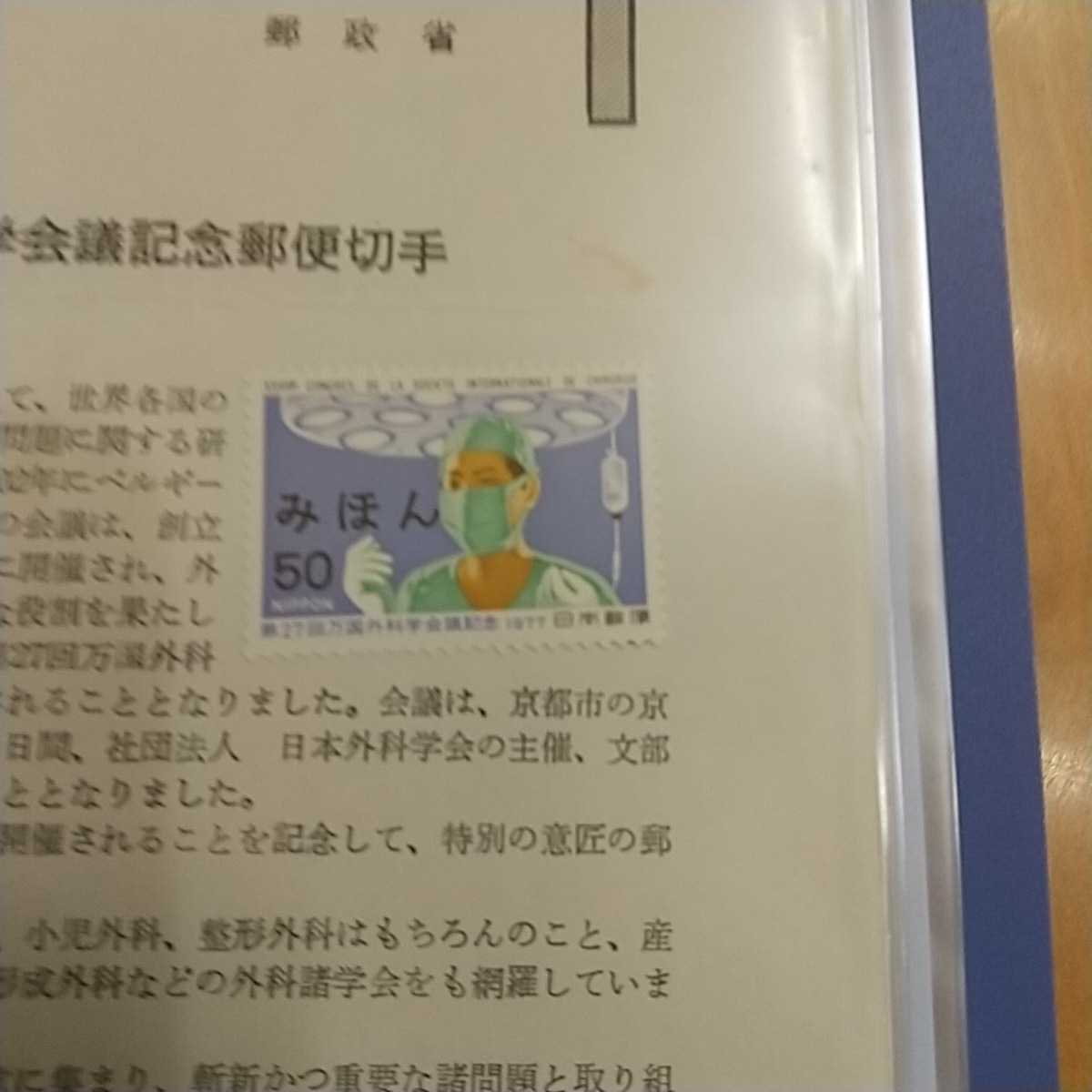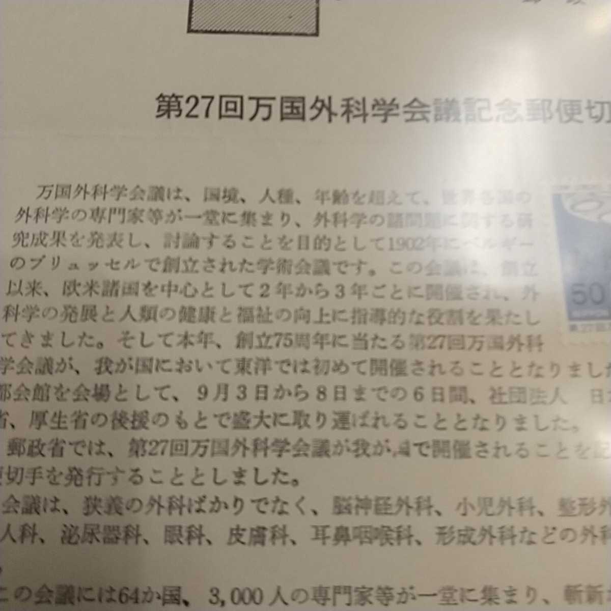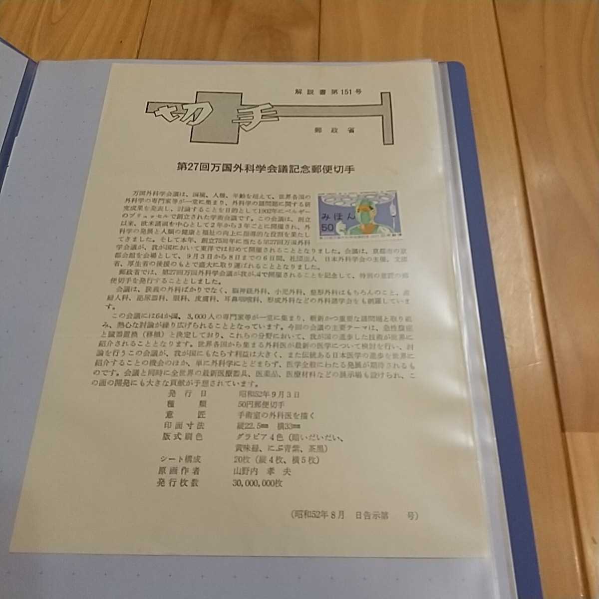 第27回万国外科学会議記念、解説書、みほん切手、折り目あり、よろしくお願いします。