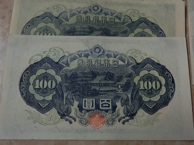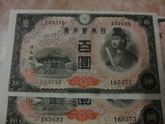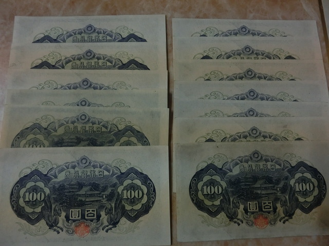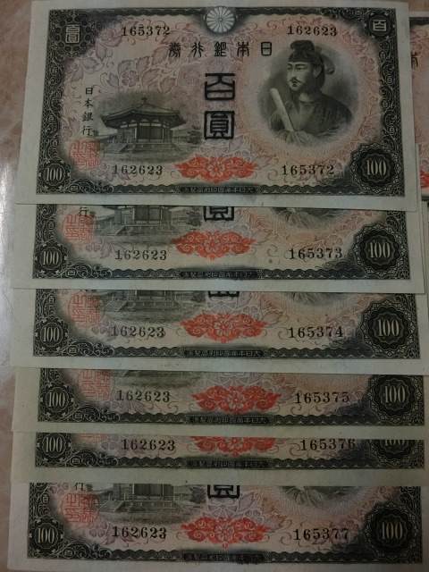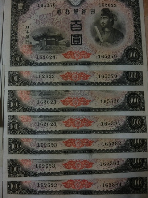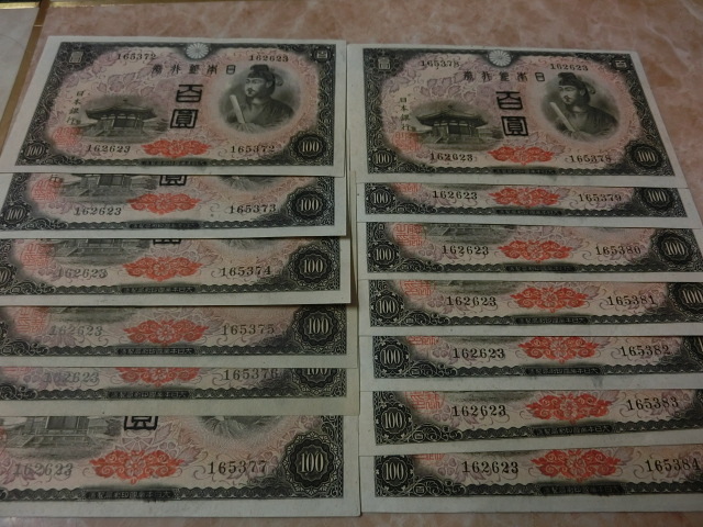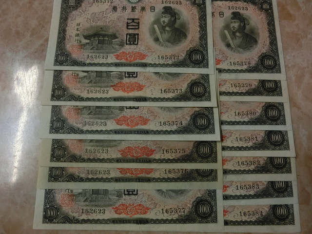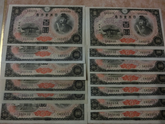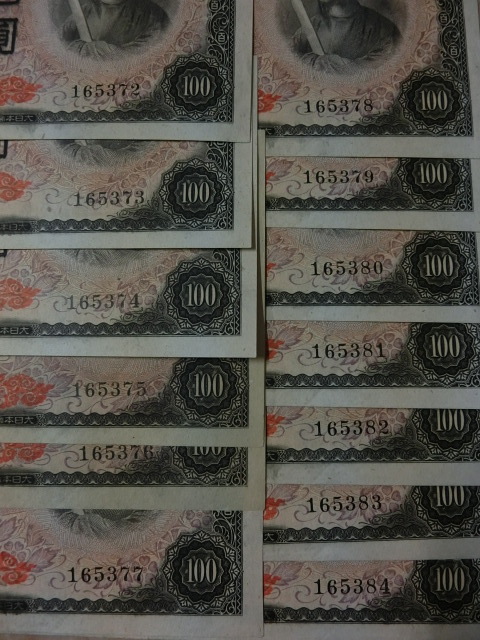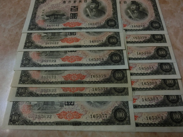 日本銀行券A号100円 4次100円の富士印刷工場で未使用~準未使用・連番を13枚です。