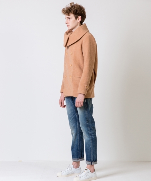 特長的な「襟回り」のデザインがこのコートの第一のポイントだと思います