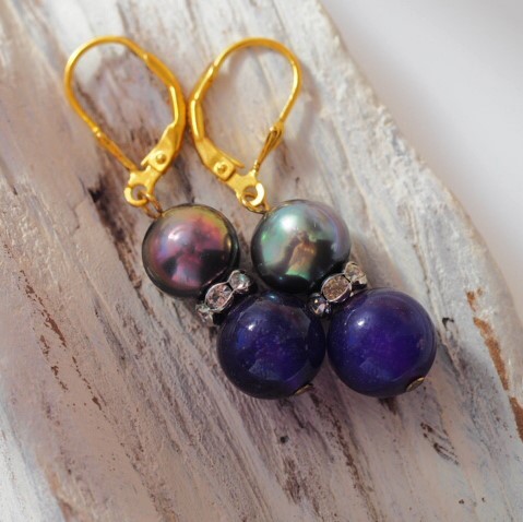 美しく高貴な紫色の水晶、アメジストは古代より世界の人々に愛されてきました。日本でも、かつては『加賀紫』と呼ばれており、気高い石として珍重されていました。深みのある濃い紫色をしているアメジストにブラック真珠を使用してピアスを仕上げております。