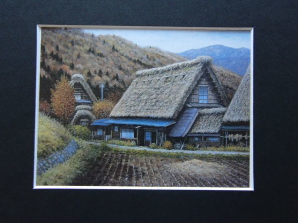 菅原清、【白川郷秋景】、希少な額装用画集より、新品額装付、状態良好、送料込み