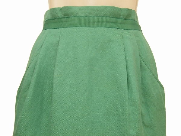 Ut極美品★ノーリーズ*NOLLEY'S Sophi★緑系★麻リネン混★鮮やかなタックデザインスカート★36号(S・7号)/レディース