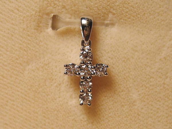 大粒のメレダイヤ6個使用してのシンプルながらリッチな十字架クロスペンダント♪