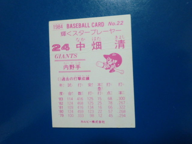 カルビー プロ野球 1984 No.22 中畑清