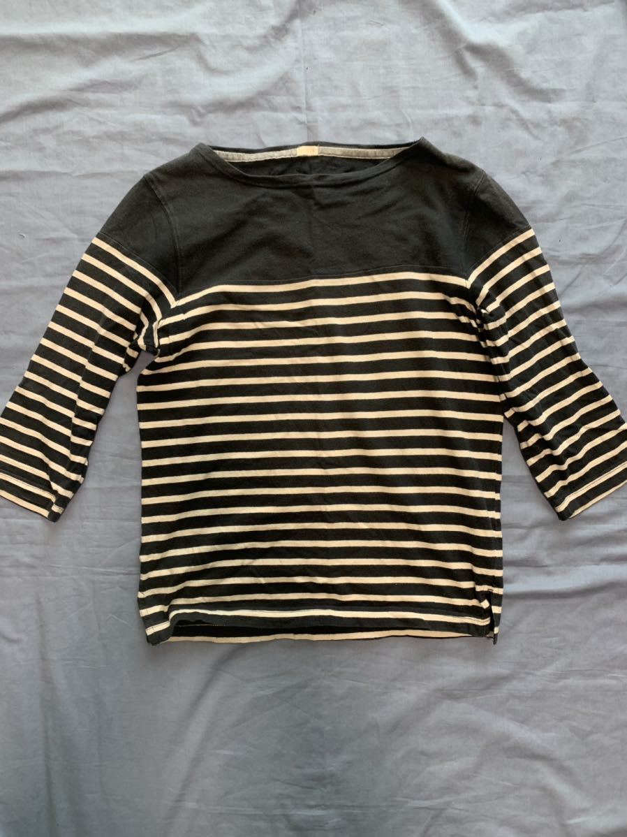古着 GU ジーユー ボーダー柄 七分袖Tシャツ Sサイズ ネイビー × ホワイト