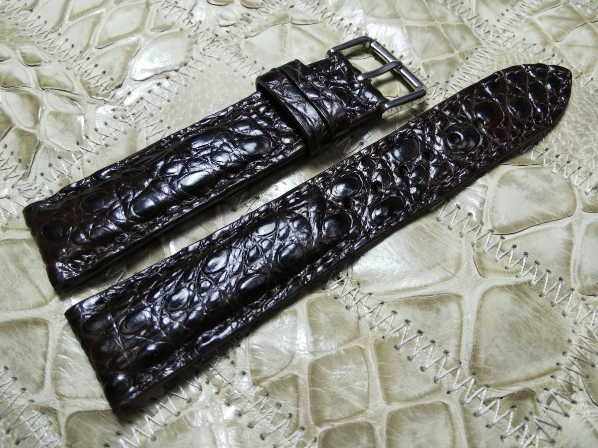 本物のクロコダイルの革を使用して製作された1点物の腕時計用ベルトです。