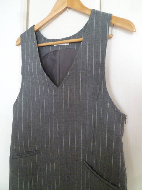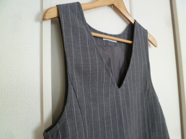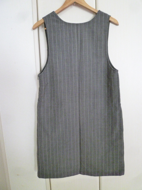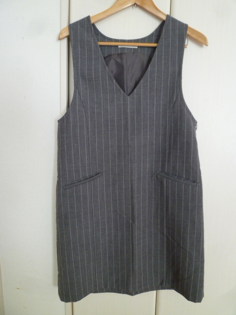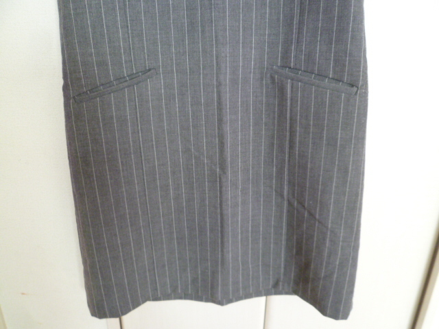 LOWRYS FARM/ローリーズファーム△グレー縦ストライプポケット付きジャンパーワンピースL/膝丈△28
