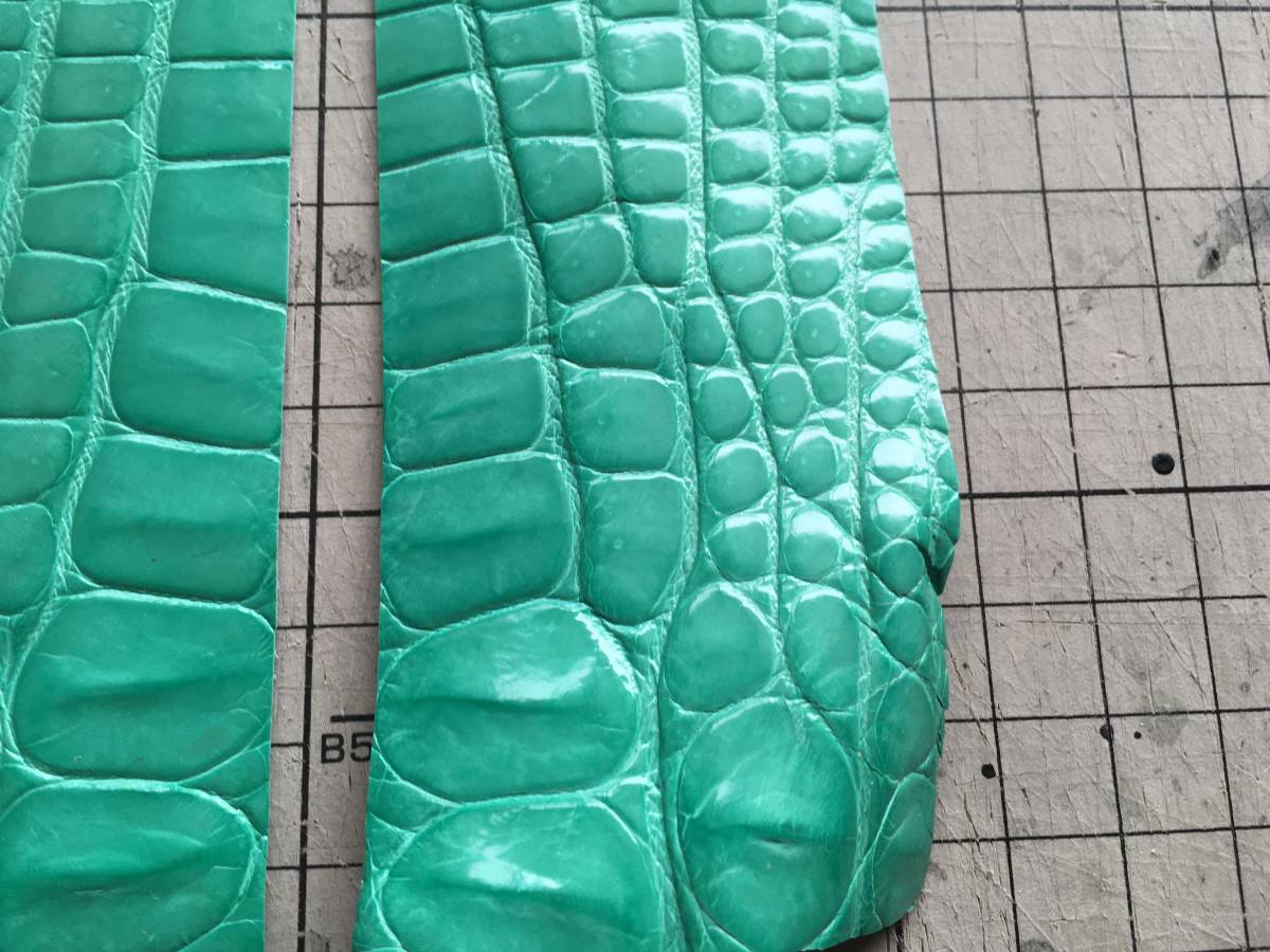 CRX-91★希少色★ティファニーグリーンのようなエメラルド★最上級ポロサスクロコダイル レザークラフト はぎれ アリゲーター※画像物送付