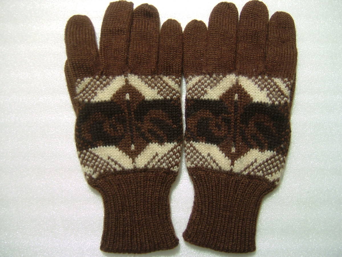 ウール手袋 ブラウン 長さ22cm 中指6.5cm 男女兼用