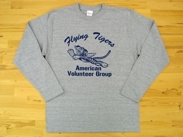フライング・タイガース 杢グレー 5.6oz 長袖Tシャツ 紺 L ミリタリー AVG Flying Tigers U.S. AIR FORCE