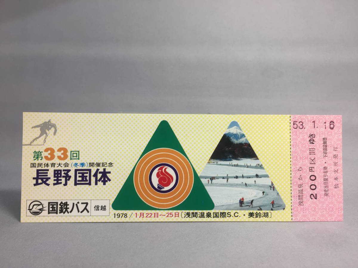 国鉄・信越地方自動車局 昭和53年1月16日 第33回国民体育大会(冬季)長野国体開催記念 乗車券1枚 【K13-5384-2】