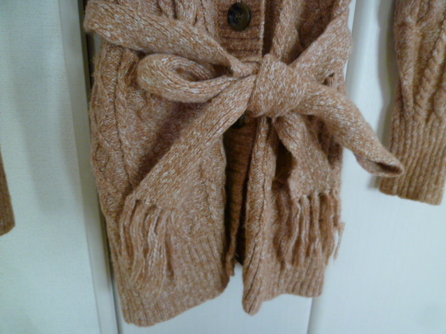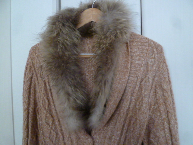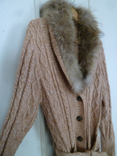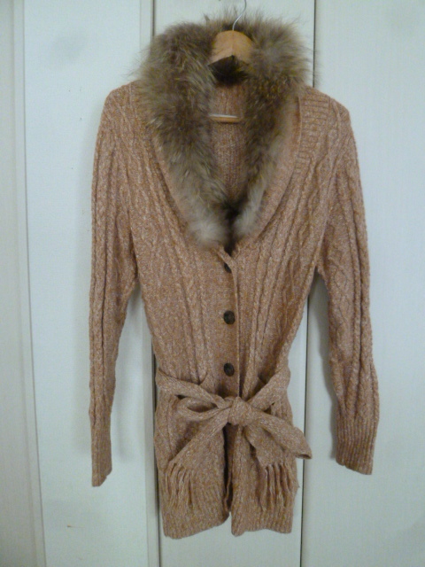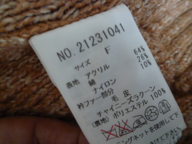 Alphabet's alphabet/アルファベッツアルファベット○オレンジ系ラクーンファー付きニットカーディガンF/ウエストリボン○JK1027