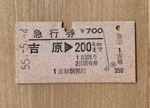 硬券 209 急行券 東海道本線 吉原→200kmまで 700円券 昭和55年 NO.0593