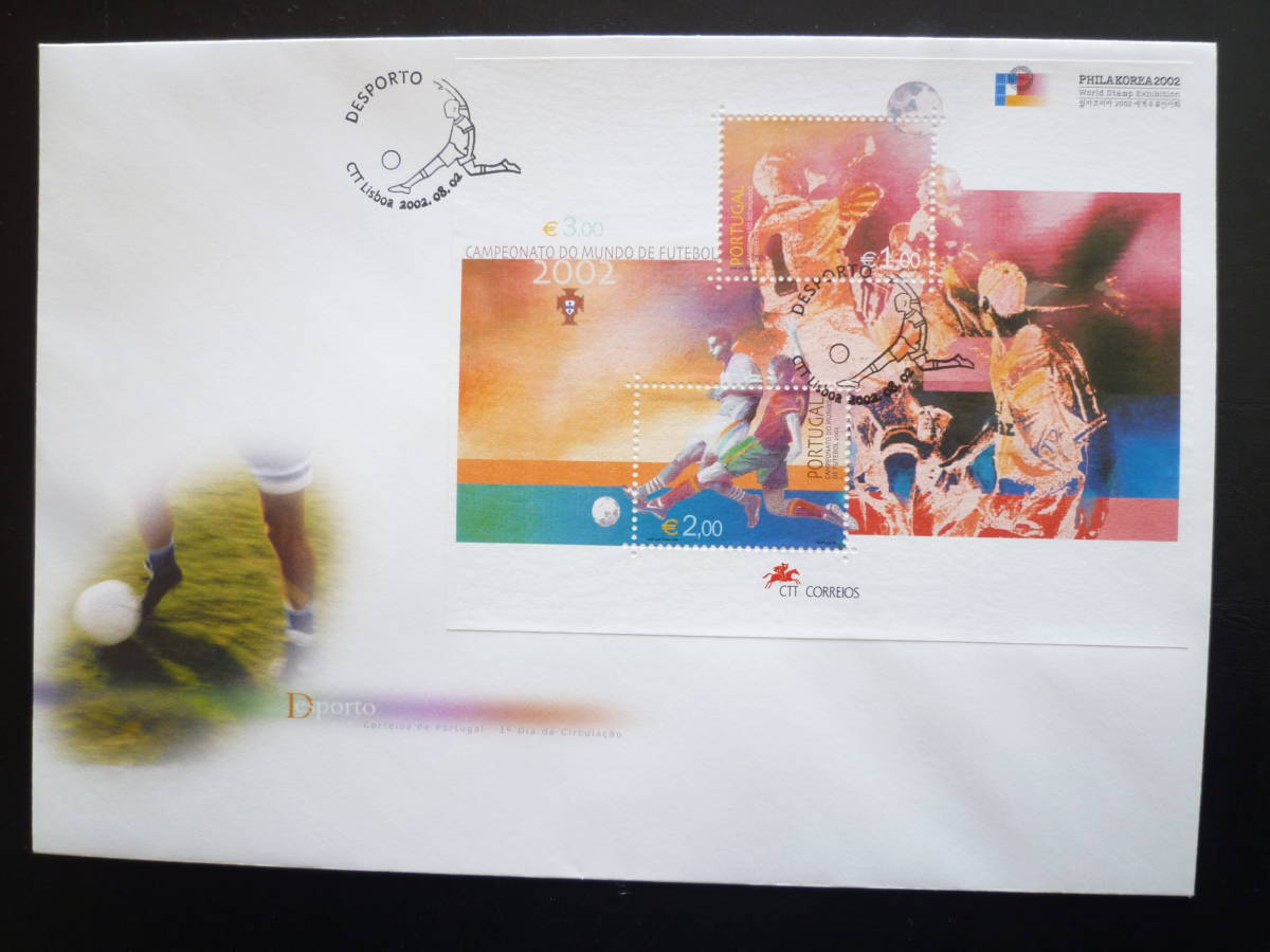 ポルトガルから発行された2002ワルールドカップ日韓大会の記念小型シート1種完貼り初日カバーです。フィラコリア2002国際切手展のロゴマーク入り。 ●他にもサッカー、オリンピック切手、FDCなど出品中。7日以内なら同梱可能です。(サイズや重量が変わると送料も変更になる場合があります。)