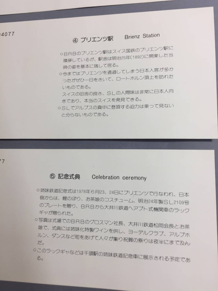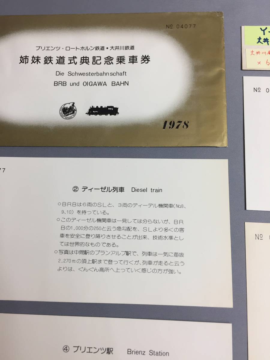 大井川鉄道 1978.12 ブリエンツ・ロートホルン・大井川鉄道 姉妹鉄道式典記念乗車券 乗車券6枚 【Y02-1536】