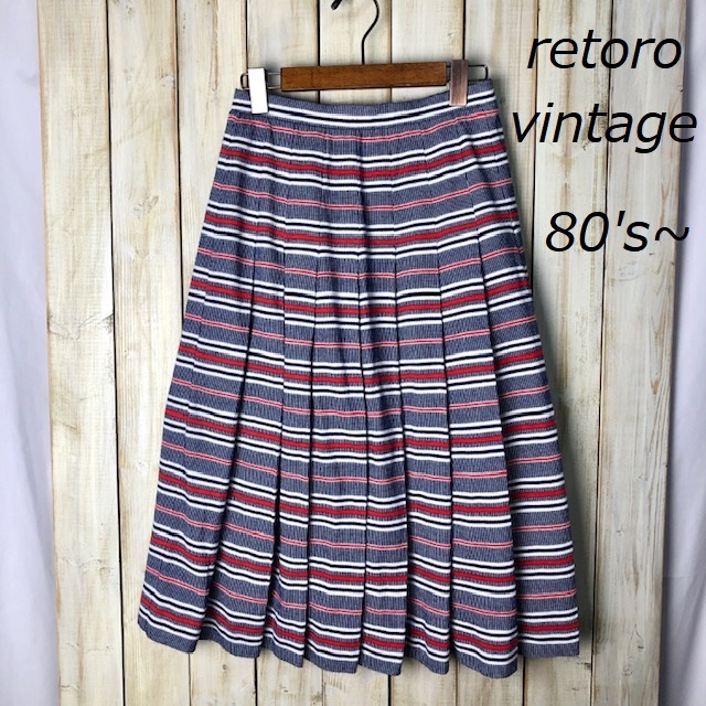 #アメリカ古着#レトロ#ヴィンテージ#USA古着#60年代#70年代#80年代#60's#70's#80's#レトロモダン#古着女子#フルジョ#昭和レトロ#スカート#ウール#ボーダー#プリーツ#膝下#ロングスカート#ニット