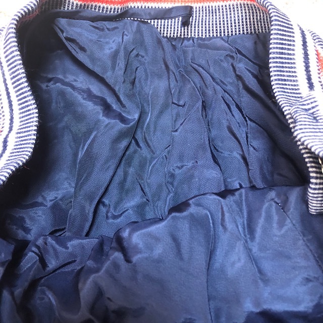 ●商品説明・・・80年代頃~のレトロな雰囲気のオールド スカートです。タグなどはないのですが、ニット織のポロシャツやニットジャージのような質感の生地質で、秋冬春用で、素材はアクリルか、それにウールが入っている感じです。裏生地付きになっています。ウエスト部分は2cm程度は調節できるようになっています。