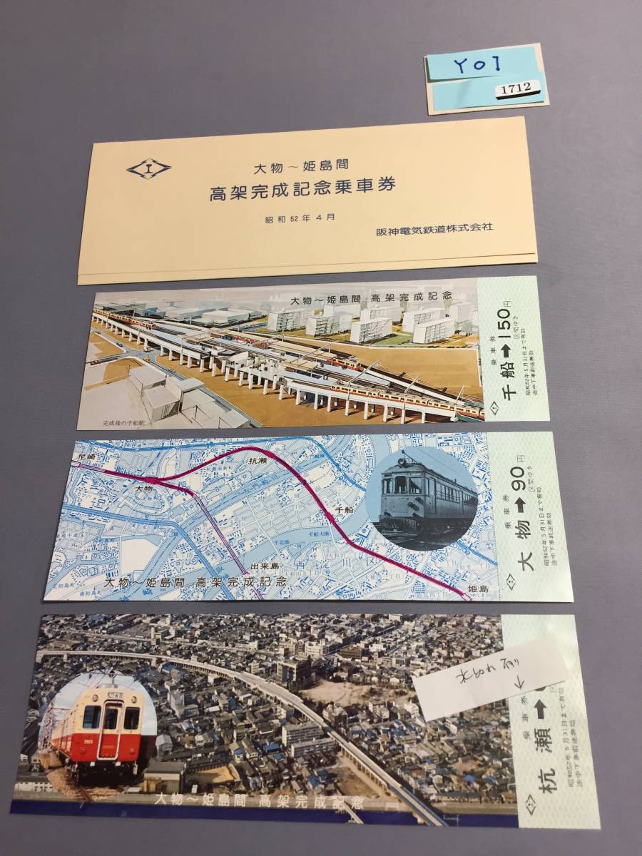 阪神電気鉄道 大物~姫島間 高架完成記念乗車券 昭和52年4月 乗車券3枚 【Y01-1712】