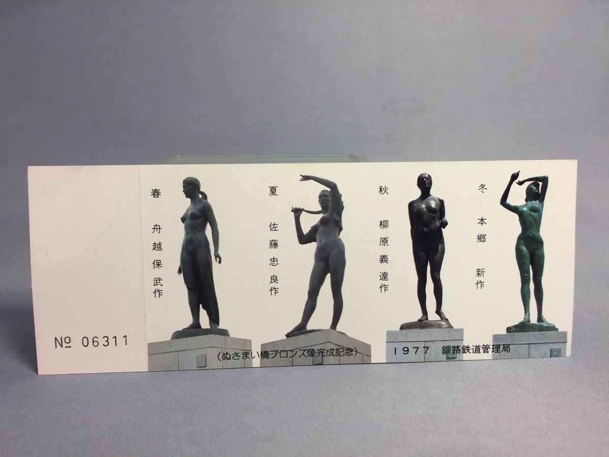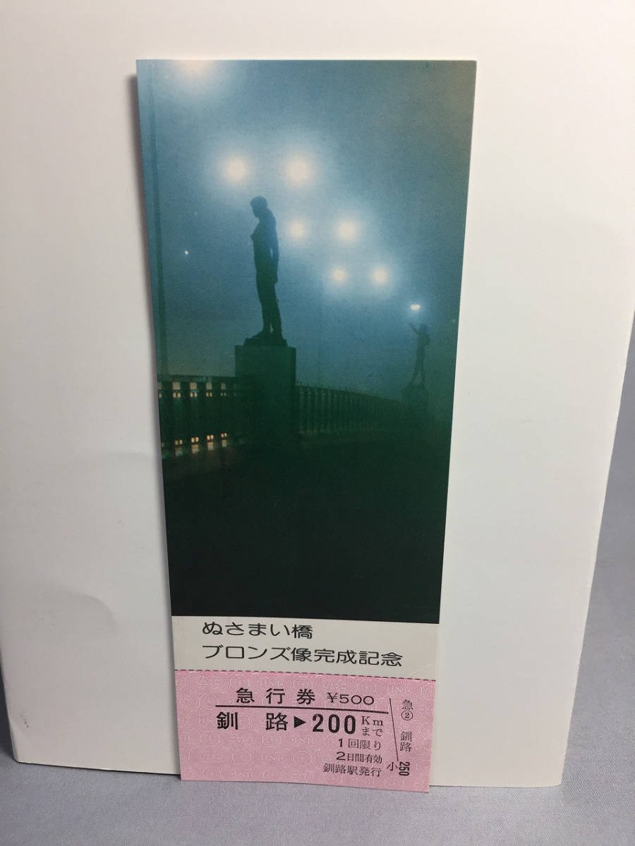 国鉄・釧路鉄道管理局 昭和52年7月15日 ぬさまい橋ブロンズ像完成記念 記念急行券1枚 【K11-5293】