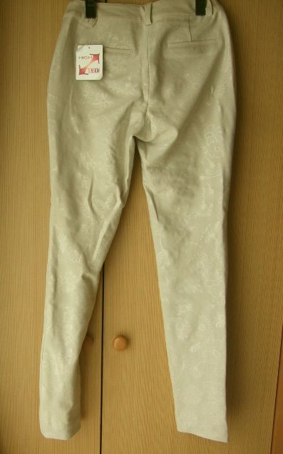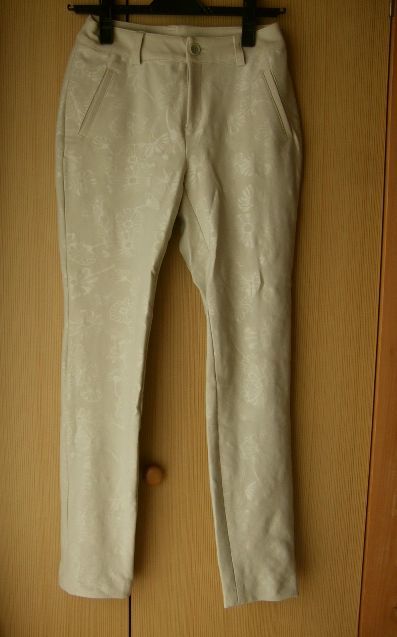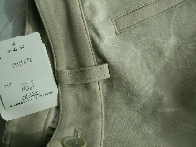 レディース新品A634■58-87サイズ■ベージュハイテンションスキニーパンツ*花柄地模様