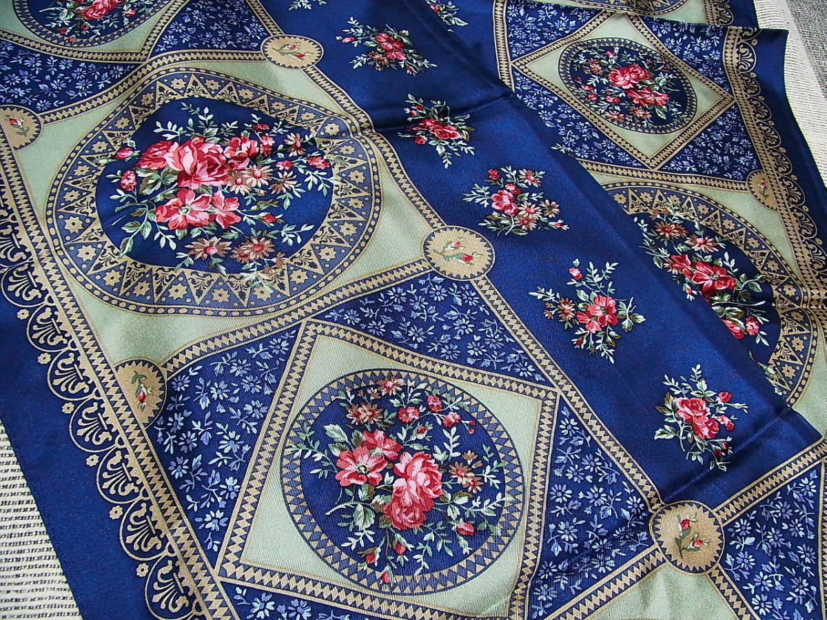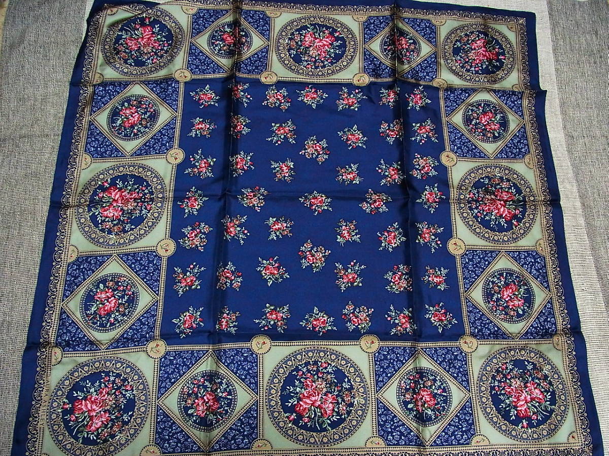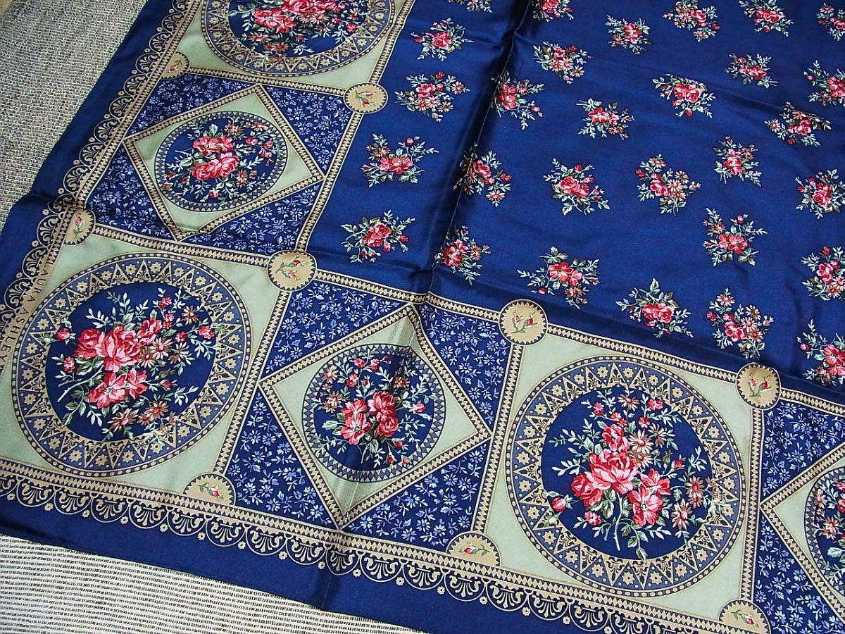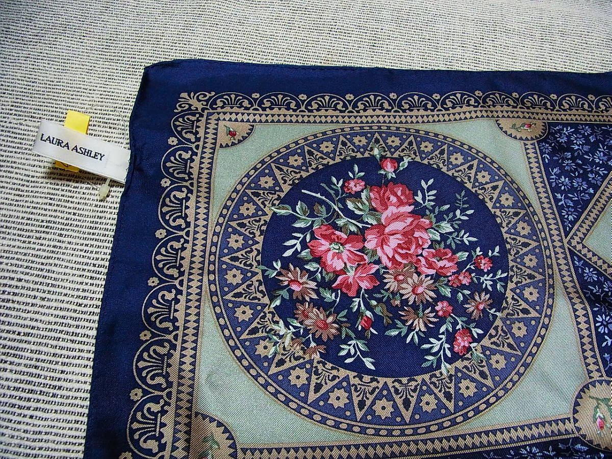 ローラアシュレイ 絹シルク100% きれいな花柄 ブルーxピンク クリーニング済 美品