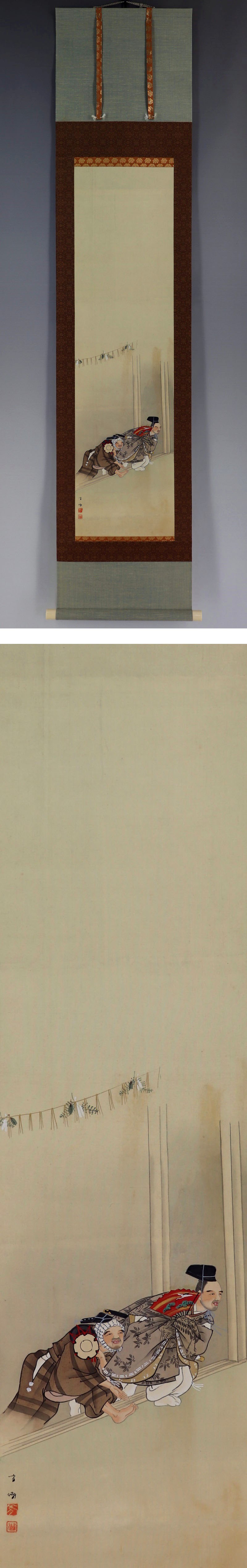 | №2007093 名品【真作】松本方湖【萬歳図】◆絹本◆合箱◆掛軸 | |