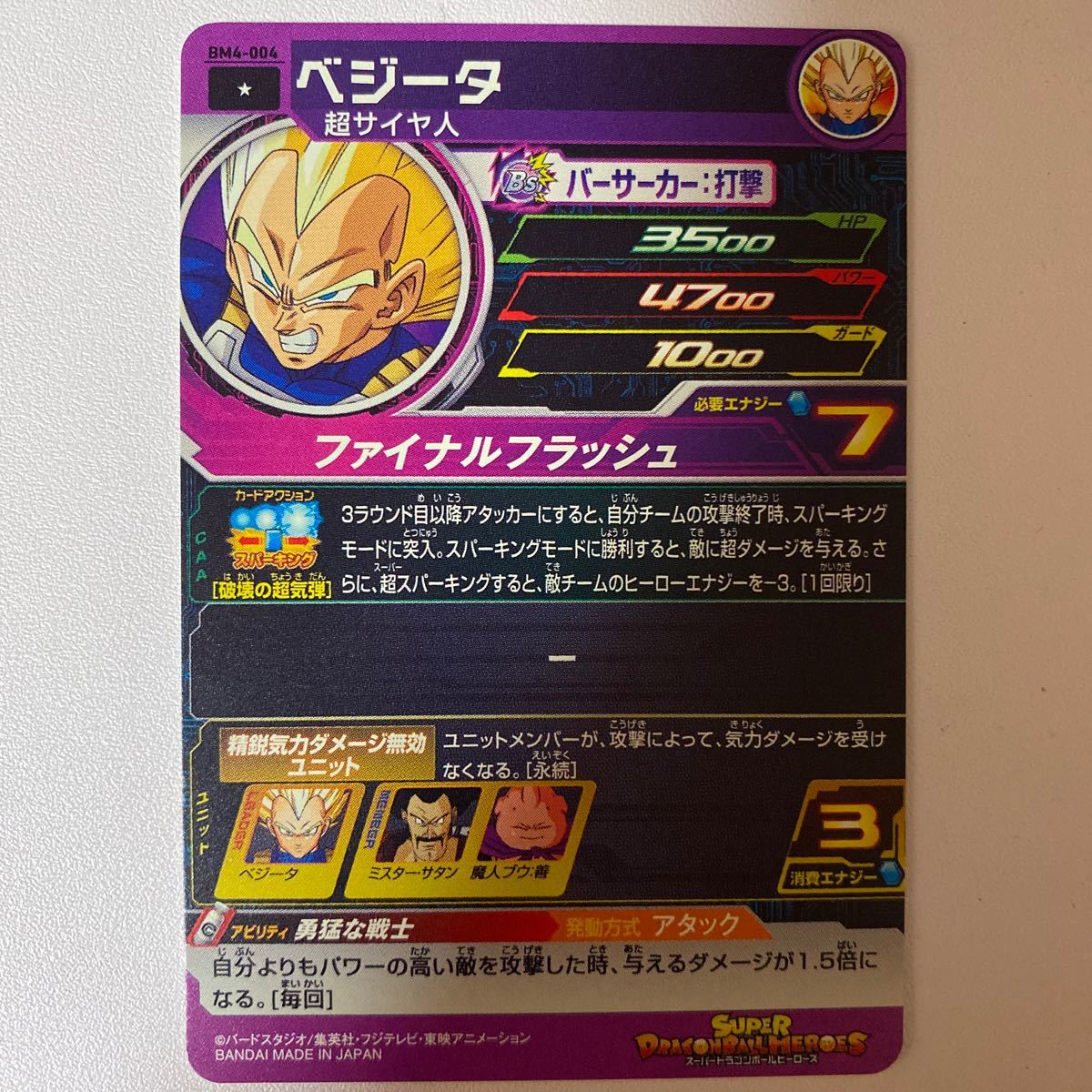 BM4弾コモン/ ベジータ(超サイヤ人)/ BM4-004/ 技:ファイナルフラッシュ/ スーパードラゴンボールヒーローズ/ レアリティ:☆/ BANDAI